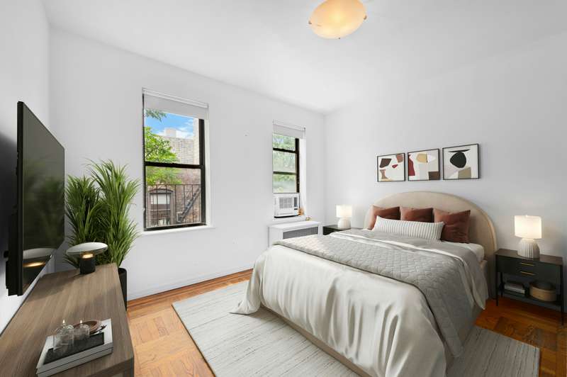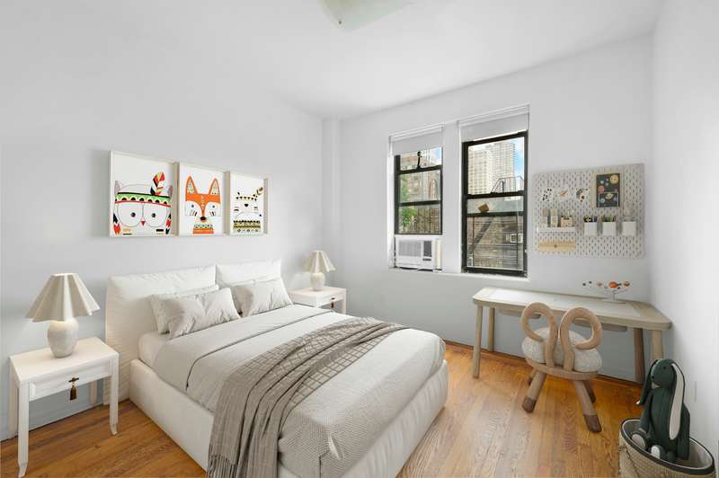 Located on a beautiful and charming block on the Upper East Side, this renovated 2-BR/1-BA pre-war co-op at The Benenson is available for purchase! ; Situated on the 5th floor of an elevator building, this peaceful, spacious, and bright unit boasts three exposures-South, North, and East. ; The large kitchen includes a rare and coveted window, and it's equipped with stainless steel appliances, including a brand new fridge. ; Both bedrooms are sizeable with amazing light and custom built closets, and they face the serene gardens. The substantial living/dining space is large and bright. The windowed bathroom boasts upgrades as well, including a new vanity. With new AC units, beautiful hardwood floors, and high ceilings, this apartment is a gem. ; ;