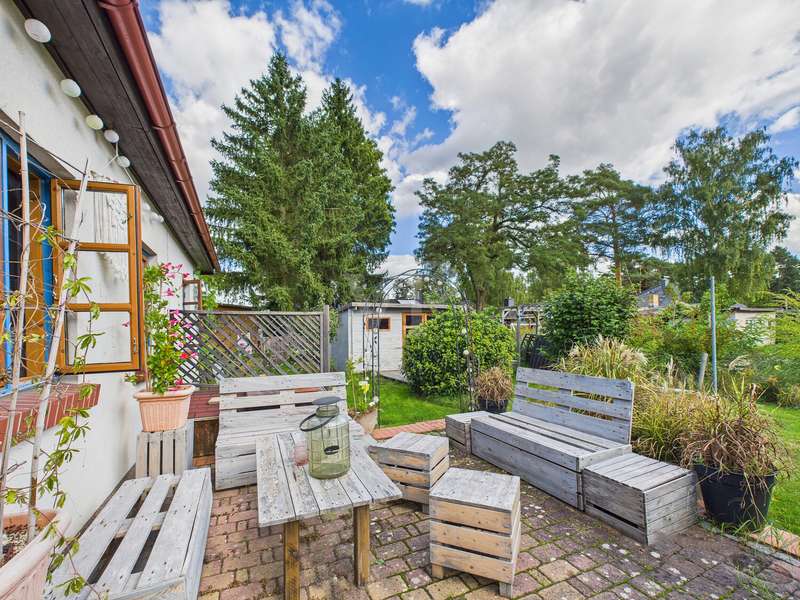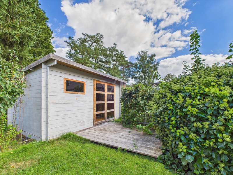 A well-kept bungalow is rented, which was built in 2003 with approx. 64 m² of living space. The house is located in a quiet area close to nature, not far from the Krüpelsee. The property stands on an approx. 690 m² large, sunny plot of land which has been fenced in on all sides. The house is accessed via a paved, covered entrance area. From the hall you enter the kitchen and bathroom on the left, and on the right you get to the living room with winter garden and a bedroom. The neat built-in kitchen was equipped with an oven, microwave, refrigerator, ceramic hob and sink. It also offers enough space for an additional dining area. The bathroom is equipped with daylight and can be ventilated with a window. It has a washbasin, shower, bathtub and toilet. From the living room you enter the cozy winter garden, which invites you to relax and get together. The heating system and washing machine are located in the utility room. The built-in cupboard at the end of the hallway offers additional storage space. In the garden there is a carport with a paved floor and an adjoining equipment room, which offers additional usable space. In addition, the property has two tool sheds, a shed and a 15 m² terrace adjacent to the living room. The garden is very well maintained and idyllically laid out, on summer days it offers plenty of space for leisure activities. Next to the terrace is the pump for the garden fountain, which is available in summer to water the plants. Overall, the tenant incurs the following costs: - Cold rent: € 800 - Additional costs: 130 € (advance payment) - Contents of the ancillary costs: sewage, drinking water, property tax, waste disposal, building insurance - The tenant concludes the contracts for gas and electricity himself directly with the suppliers, depending on the consumption and the number of people, the meter should plan around 200 - 250 €. - the owners carry out the annual operating costs settlement retrospectively In addition, a rental deposit of € 2,400 is due (3 net rents). The minimum rental period is 2 years, during which time neither parties have an ordinary right of termination.