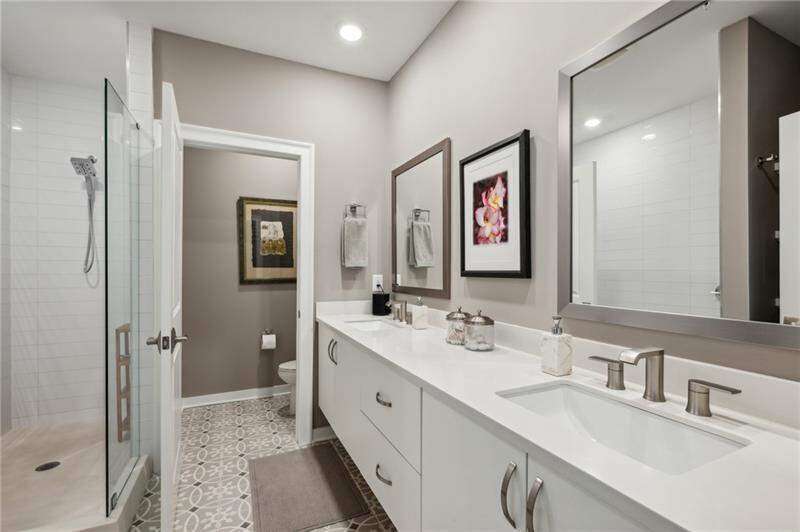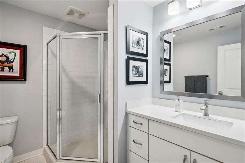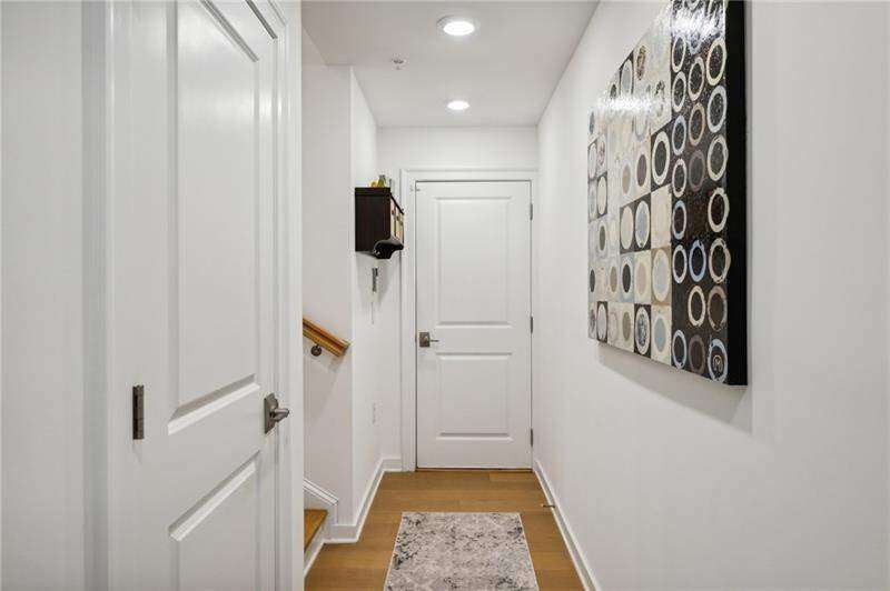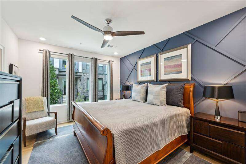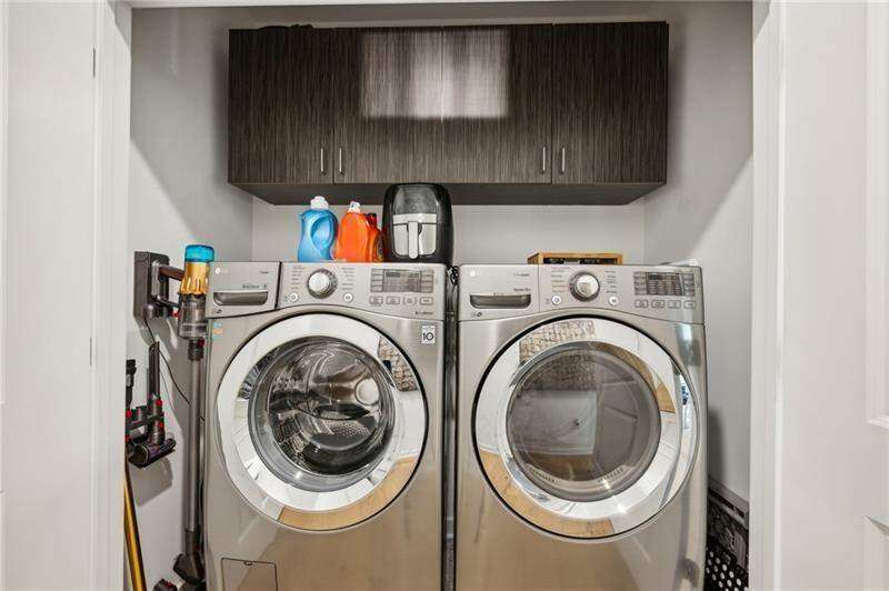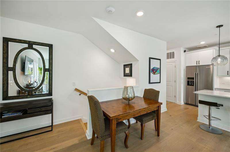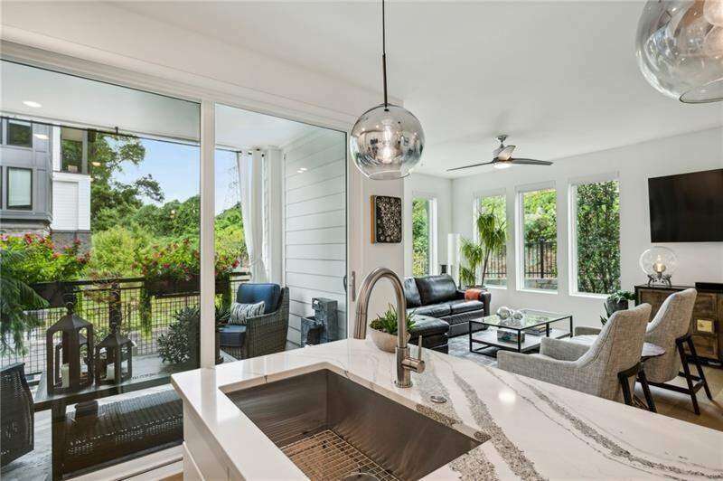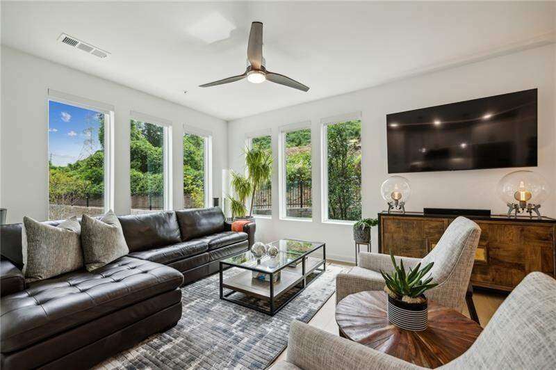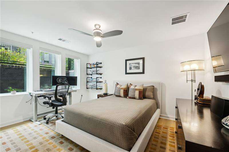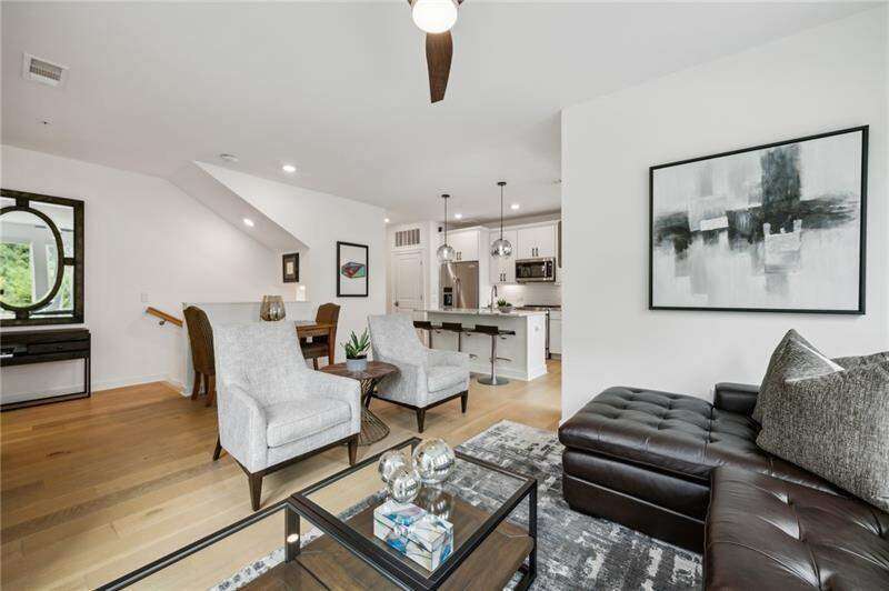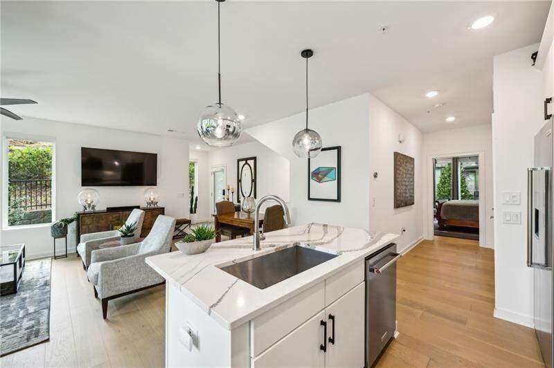 Pratt Stacks - Amazing opportunity to live in historic Grant Park next to the popular Beacon for shopping, dining and entertainment. Better yet, you'll be located in the back of the community directly on the Beltline you can see from your living area. This corner unit is full of natural light and windows galore! Light natural 7" plank hardwoods throughout, open concept floor plan with crisp, white kitchen with quartz counters, subway backsplash, high-end KitchenAid appliances, pantry, center island, sliding doors to charming covered porch, laundry closet fits side by side W/D with cabinetry storage, coat closet, two walls of windows in the living room, over-sized primary suite with large custom designed closet with hamper and shoe shelves, primary bath w/ huge walk-in shower, water closet, linen niche and double vanities with quartz and custom mirrors. Spacious guest bedroom with walk-in closet and triple windows. White guest bath with shower and penny tile. Extra storage closet under the stairs. Single car garage w/ large storage room, remote controlled rolling shades throughout, WIFI dimmers, NEST thermostat, one of the few units with a FULL DRIVEWAY that will fit another car. Impeccably taken care of and improved - shows like a model home!