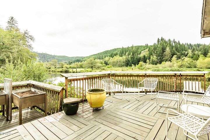 A slice of heaven for nature lovers, the bird and wildlife watching is amazing! Custom home with beautiful Fir woodwork, river views with lots of light, and two river view decks. The level sunny lot allows for great gardening, there are mature specimen plants on the property which is right on the river but not right on the highway. There is a garden shed, large shop in the basement, and an electric lift. The fishing is good on this stretch of river, no dock but Ichwhit Park with a boat launch is half a mile down the road. Property is being sold AS IS. Inspection Report Summary is in Documents. Gail Stonebreaker is a licensed OR Realtor. Seller legal names in Private Remarks.