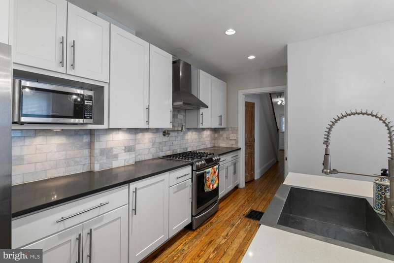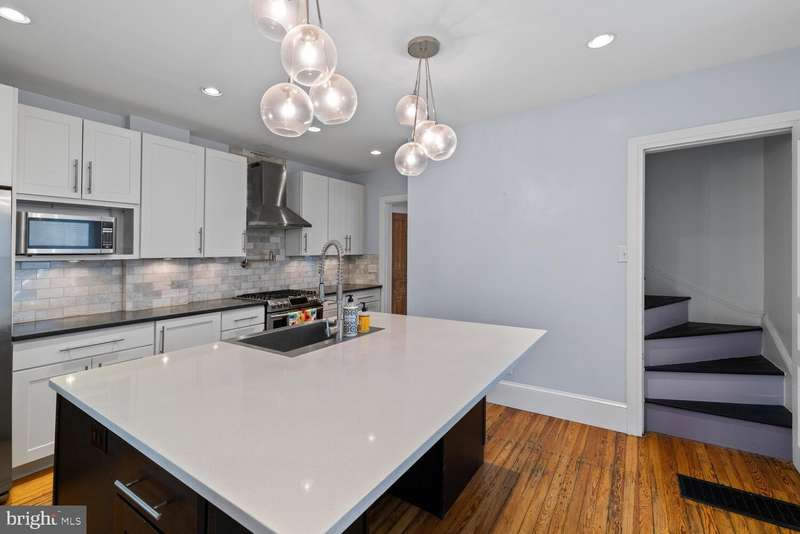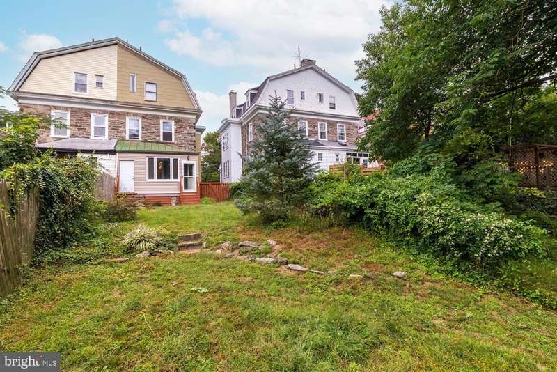 Don't miss this beautifully landscaped, 3-story stone twin just steps from Germantown Ave, located in the heart of Mt. Airy. With nearly 3,000 sq ft of living space, this home blends original charm with thoughtful updates. The original double front doors open up into a vestibule, leading to sun-filled living and dining rooms featuring hardwood floors, classic pocket doors, and stunning architectural details. The updated kitchen is both stylish and functional, boasting quartz countertops, a marble backsplash, stainless steel appliances, soft-close cabinetry, and a large island for prep and seating. An enclosed rear porch offers flexible bonus space, while the slate patio and lush backyard provide a peaceful setting for relaxing or entertaining. A convenient powder room and access to a large basement with laundry and storage complete the main level. Upstairs, the second floor offers three spacious bedrooms and a full bath, plus a back staircase to the kitchen. The third floor adds three more bedrooms and another full bathroom featuring a charming original clawfoot tub. Located just two blocks from Germantown Ave's shops and restaurants, a short walk to regional rail, and minutes from Wissahickon Park and Chestnut Hill, this home combines classic beauty with modern comfort. Schedule your showing today-this one won't last!