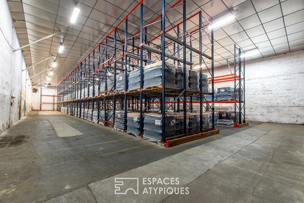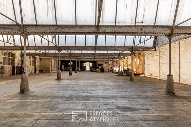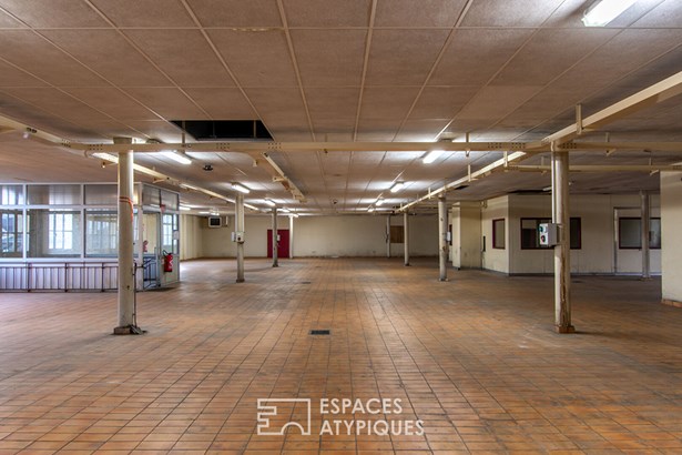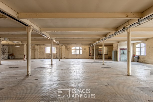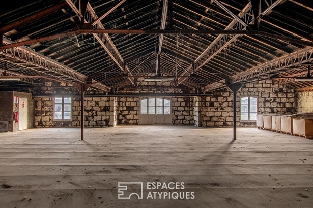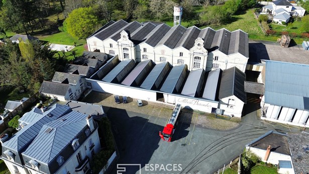 From this entrance, one can notably admire the magnificent pediment of the main building in tuffeau stone, which majestically overlooks the loading dock and its Eiffel-inspired structure. This remarkable building extends over 4 levels and includes a basement as well as three impressive floors of approximately 1,700 m2 each. In addition to this centerpiece, the site offers a vast storage room of approximately 1830 m2, a hangar, an annex serving as office space of more than 500 m2, as well as a unique residential house located at the entrance to the premises. This setting offers the potential and the ideal backdrop to bring bold projects to life, whether you are looking for a large and functional space or you are a developer looking for authenticity.