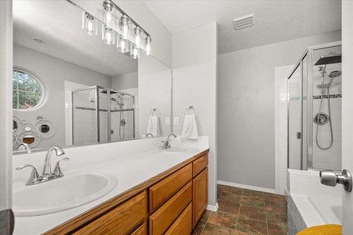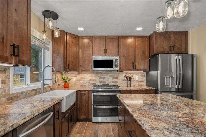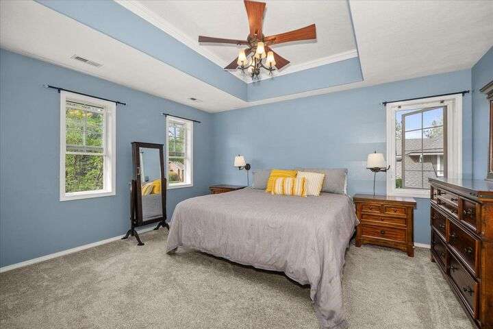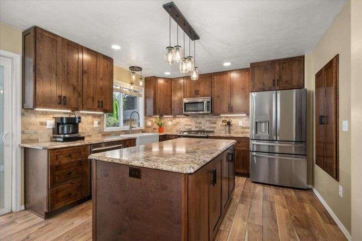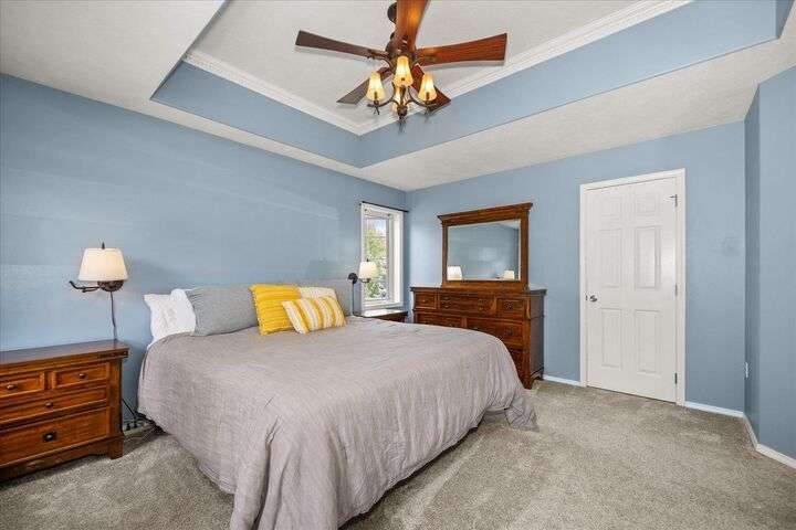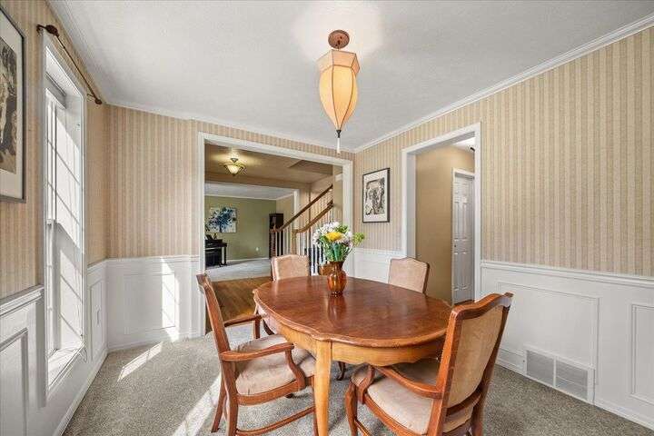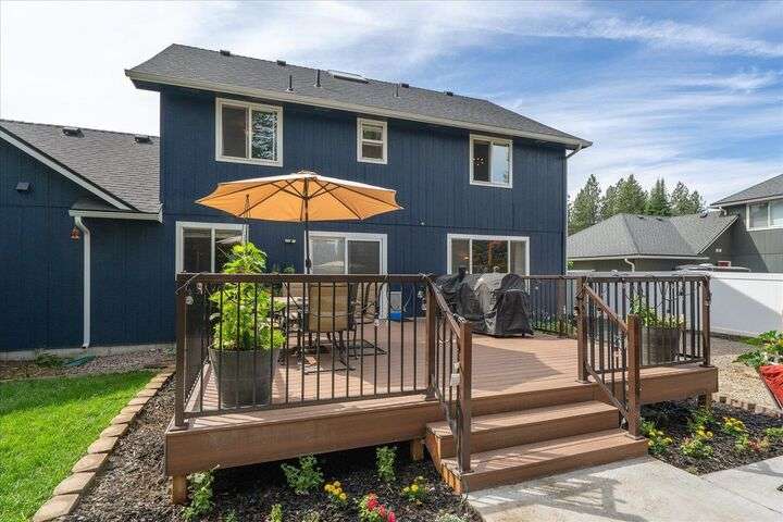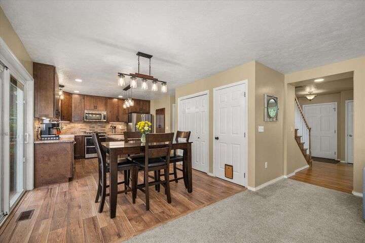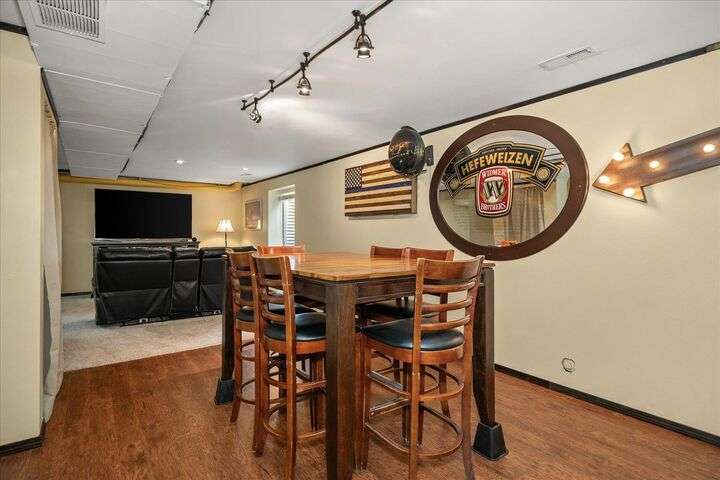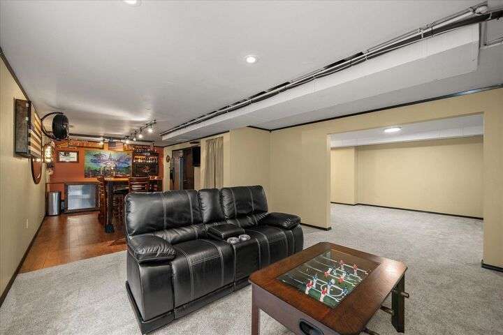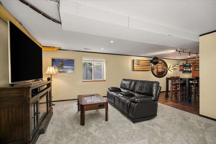 Fully updated 4-bedroom, 2.5-bathroom 2-story home packed with stylish upgrades and modern touches. From new roof, furnace, fresh paint to new landscaping, carpets, and a stunning kitchen remodel, no detail has been overlooked. With a new deck, concrete extension, and an amazing basement entertainment space, this home is perfect for both relaxation and entertainment. Upon entering, you’re greeted by a spacious formal dining and living area that could also serve as a home office. This flows seamlessly into the heart of the home—the kitchen and cozy secondary living space—ideal for open-concept living. Step through the back slider onto the expansive new deck, which leads to a beautifully landscaped garden and fully fenced backyard, providing the perfect outdoor retreat. Upstairs, three generously sized bedrooms and a luxurious primary suite includes soaking tub, dual sinks, and a walk-in closet. But the real bonus is the finished basement, where you’ll enjoy a fully equipped bar, ready for fall football!