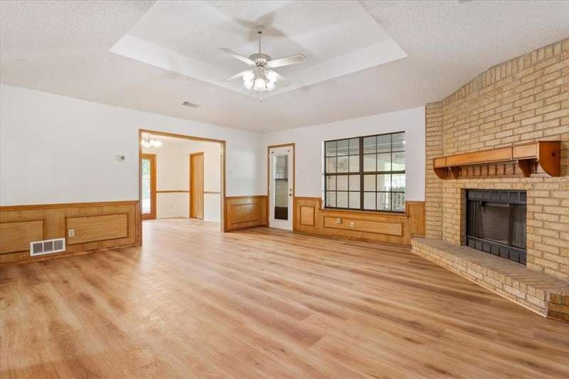 Welcome to 510 Del Paso in Robinson! This beautifully updated three-bedroom, two-and-a-half-bath home sits on a spacious 0.6-acre lot surrounded by mature trees and fruit trees, offering the perfect blend of comfort and charm. Step inside to find all-new luxury vinyl plank flooring, fresh interior paint, and a brand-new roof. The open floor plan creates an inviting atmosphere, featuring a cozy wood-burning fireplace as the centerpiece of the living area. A formal dining room just off the kitchen provides the perfect setting for family meals and gatherings. The kitchen offers ample storage and workspace, while recent updates in the bathrooms—including refreshed showers, countertops, and faucets—add a modern touch. A convenient utility room and half bath are located off the two-car garage entry for everyday functionality. Enjoy outdoor living in the fully privacy-fenced backyard, complete with a large covered patio—perfect for entertaining or relaxing. The property also boasts a massive shop (1,380 square feet) with high ceilings and power, ideal for storage, hobbies, or workspace needs. If you’re looking for a move-in-ready home that offers space, comfort, and versatility, 510 Del Paso is ready to welcome you home.