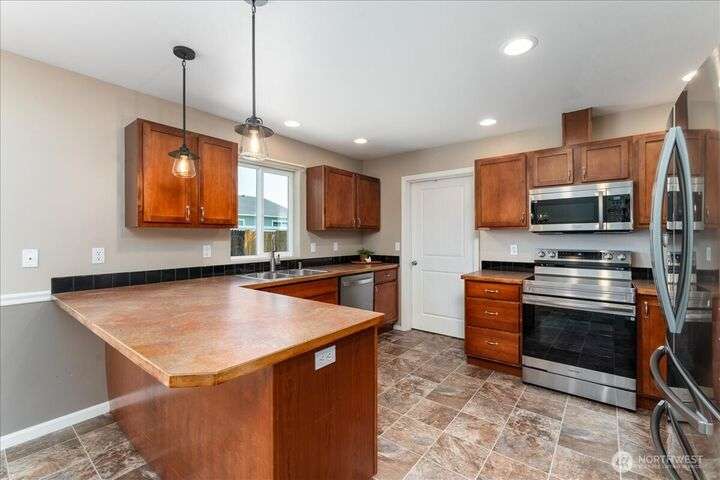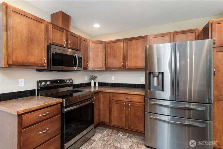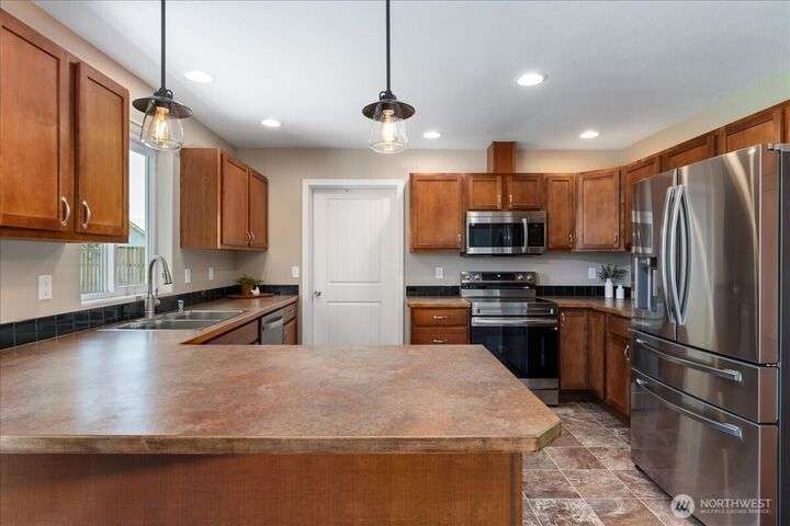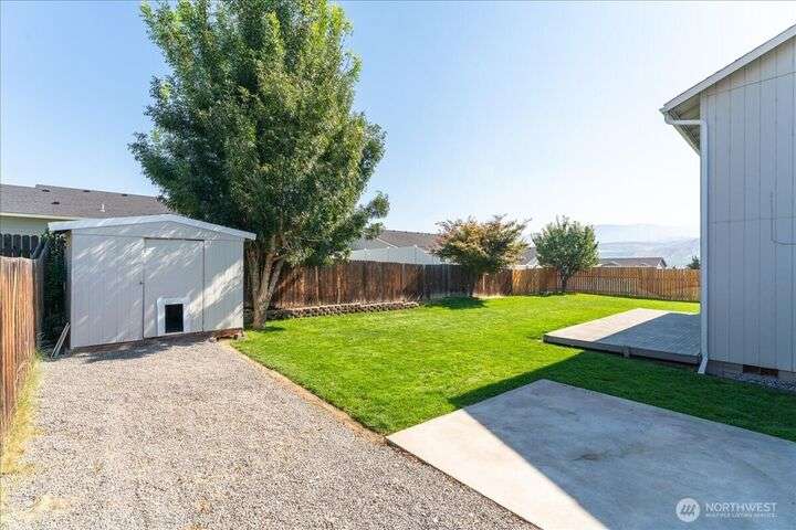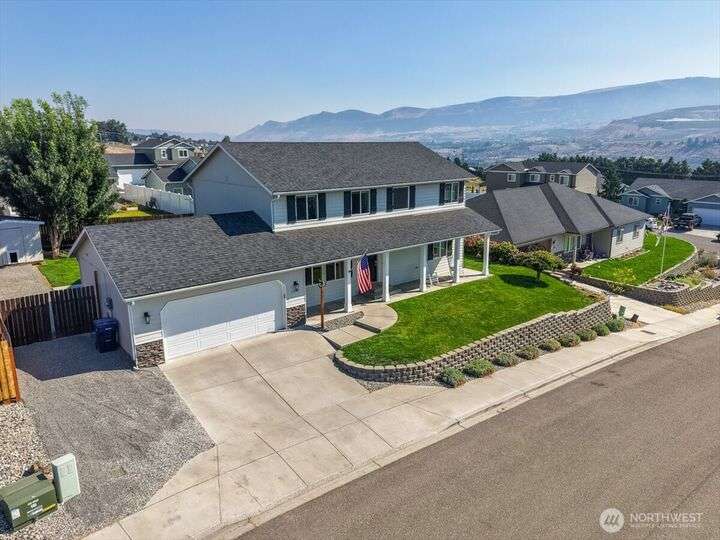 Charming, updated 2-story in prime East Wenatchee location with pretty views, large fenced yard, and RV parking for toys. Inside the entryway you will be welcomed to beautiful, easy care LVP flooring, custom blinds, spacious living room, and a walk-in entry closet for ample storage. The kitchen features new appliances, an eating bar, and a slider to the fenced backyard. Down a short hall you will find a powder room and a HUGE family room with space for that home office you need. Upstairs features 4 generous sized bedrooms, including the Primary Suite and a full guest bath. One of the upstairs bedrooms has fun built-ins for lots of options. All this includes irrigation water and tons of space to play in the yard.