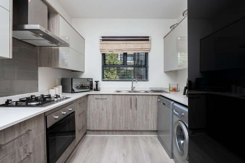 Fitted with dual sinks, a gas stove, electric oven and cooker hood, this well sized area also affords plenty of storage space. A nifty broom cupboard and spice pantry, while still catering for two under-counter appliances. Extras Include: Fridge , Washer & Tumble Dryer