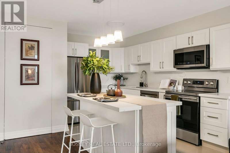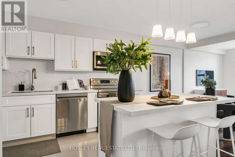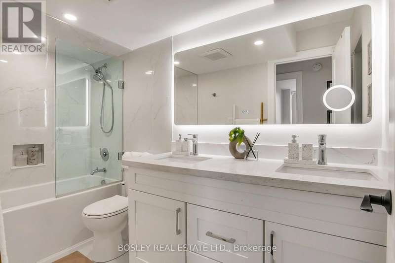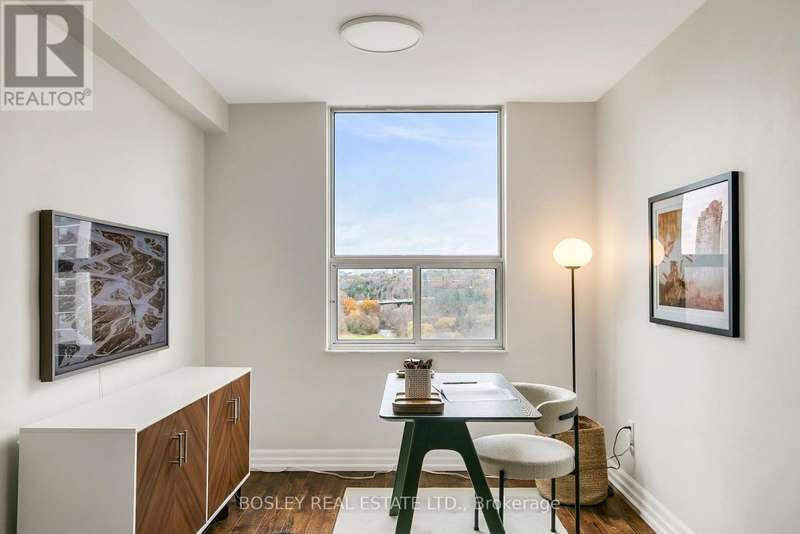 Life on the Edge - of the Don Valley's lush tree canopy, fairways, and the city. Perched above lush treetops at 10 Edgecliff Golfway, Suite 1411 offers a serene vantage point overlooking golf greens, winding trails, and the natural rhythm of the Don Valley. This fully reimagined and renovated 2-bedroom plus den residence blends thoughtful design, modern comforts, and practical luxury. Every corner of Suite 1411 has been renewed: wide-plank flooring, a airy and gleaming new kitchen with custom cabinetry, quartz counters, custom island, and stainless-steel appliances; an expanded, hotel-inspired bathroom with modern fixtures and upgrades. A complete electrical transformation and new HVAC system ensure efficiency and comfort. Thoughtful touches-like reconfigured storage closet and a cleverly-concealed laundry room, both featuring hidden doorways, bring smart design to everyday routines. One parking space is included, and convenience abounds beyond 10 Edgecliff's doorstep - minutes to the Don Valley Parkway, shopping at the Golden Mile, and the cultural treasures of the Aga Khan Museum. Nestled in a park-like pocket yet perfectly connected to everything, this is where modern living meets the city + nature's edge.