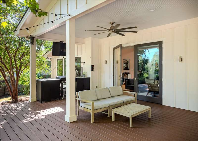 Tucked away on an oak-lined street in South Austin, this property offers the rare combination of privacy, space, and convenience just 10 minutes from the airport and downtown. The home sits on two full lots, both of which convey, creating an oversized property with a protected 150-foot natural buffer zone behind the fence. The result is a private, wooded setting that feels rural while keeping city amenities close at hand.