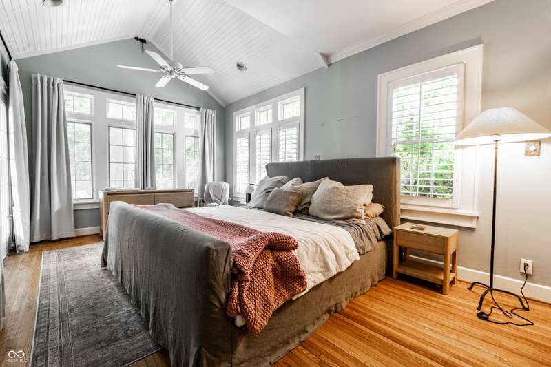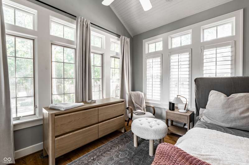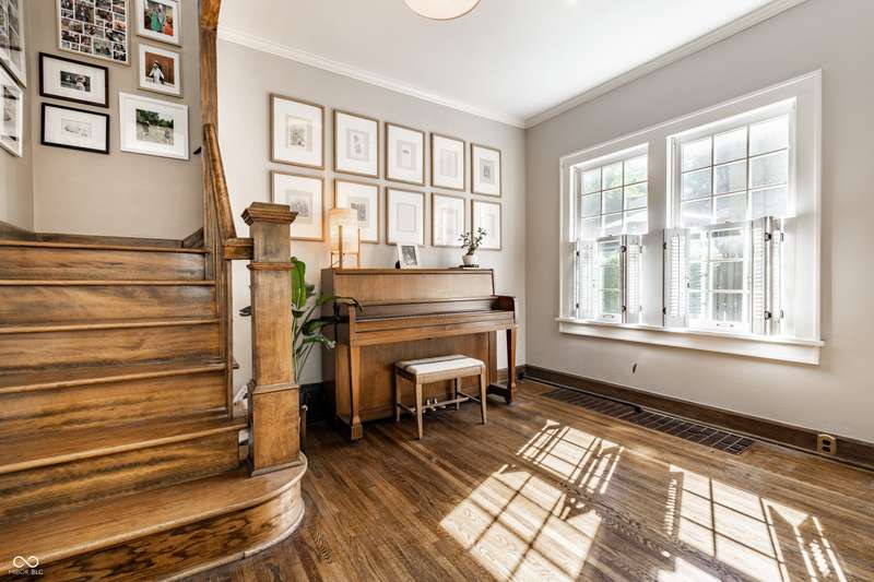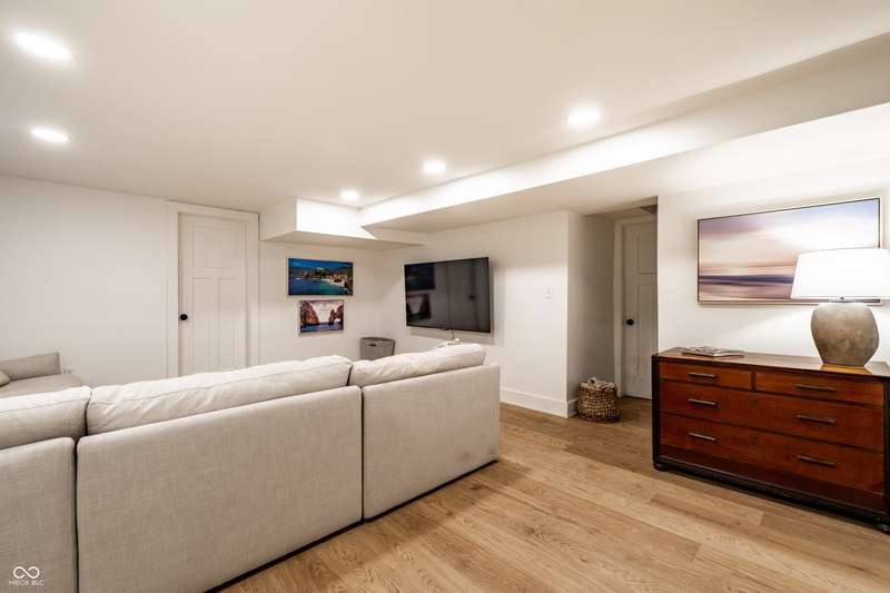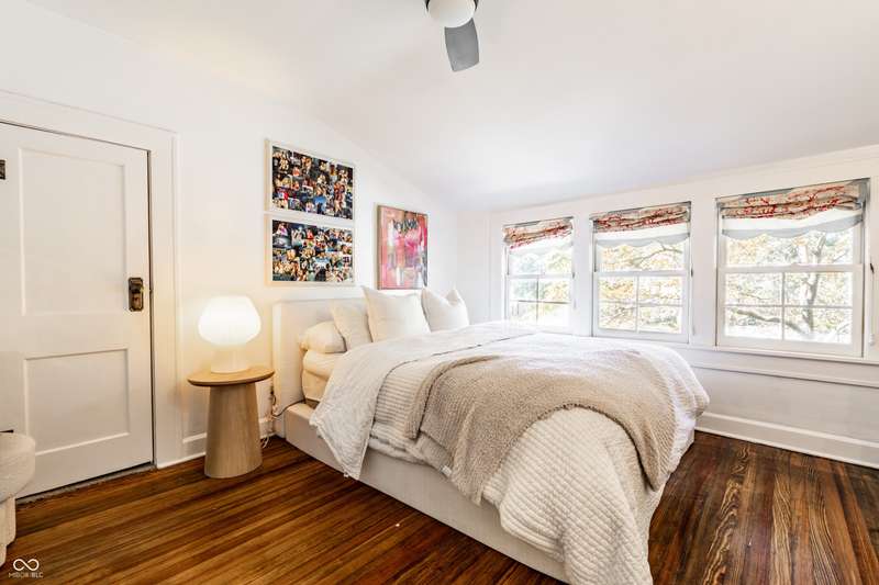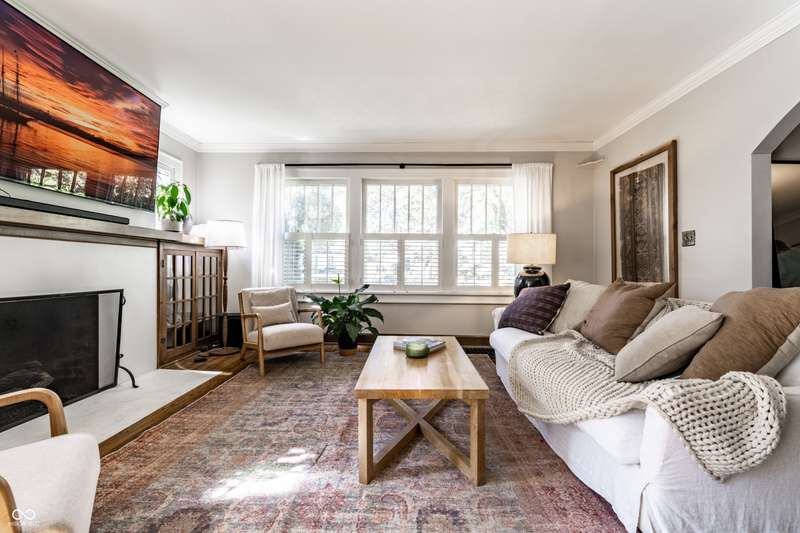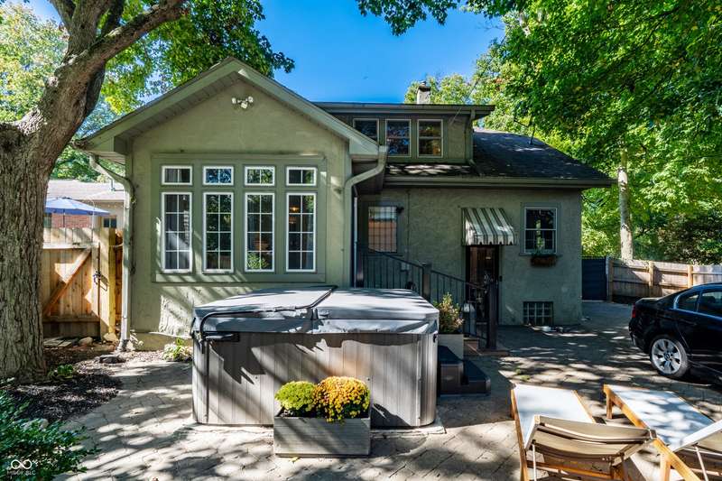 Quintessential Forest Hills home with lush & private backyard! With direct access to the Monon Trail, this property is a prime location to enjoy the many restaurants & shops Broad Ripple has to offer. Generous living room with fireplace flanked by built-ins, kitchen with stainless steel appliances, granite counters, white cabinets & cozy breakfast nook. Main level primary bedroom with French doors leading to backyard, 2 additional bedrooms upstairs share a huge bath. Newly finished basement offers a spacious family room perfect for lounging! 2 car detached garage, driveway newly gated/screened, hot tub!