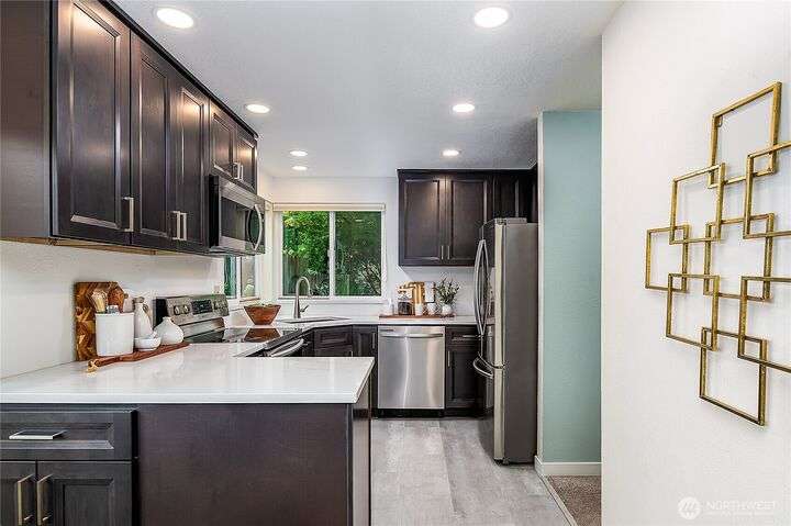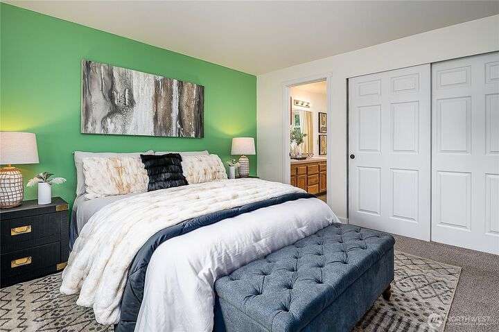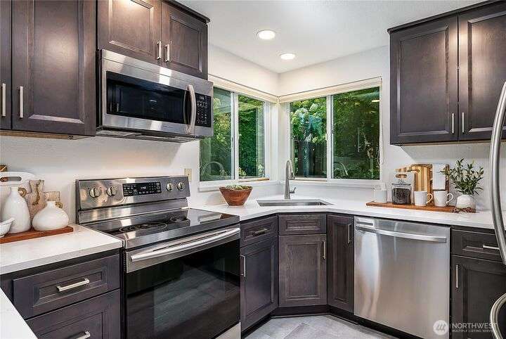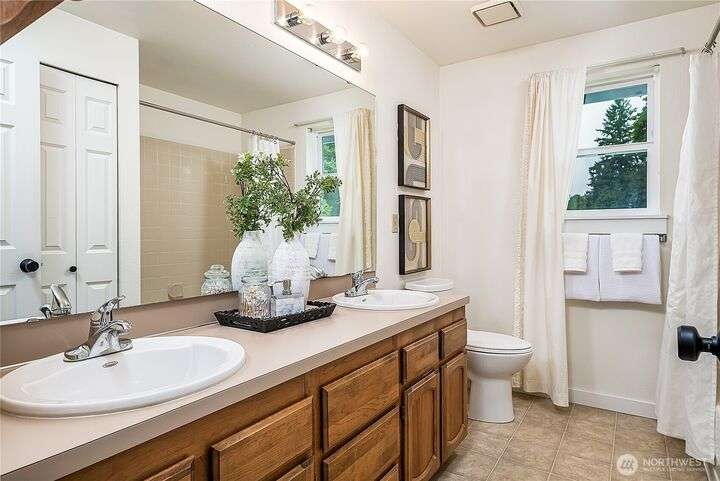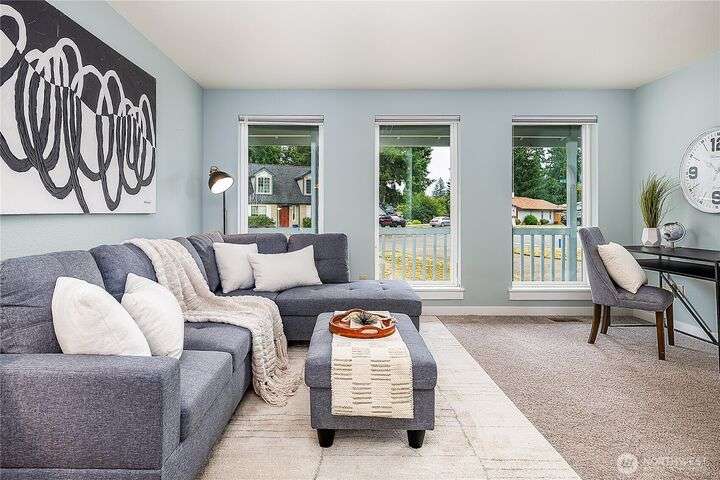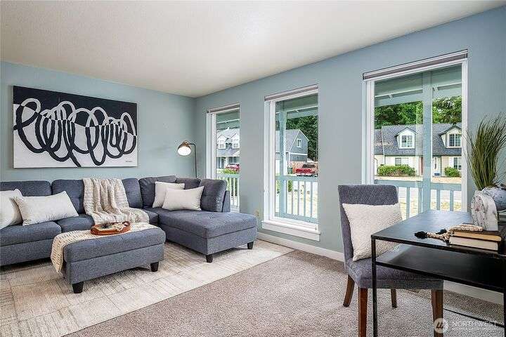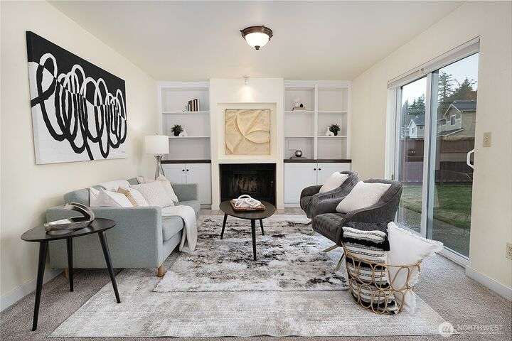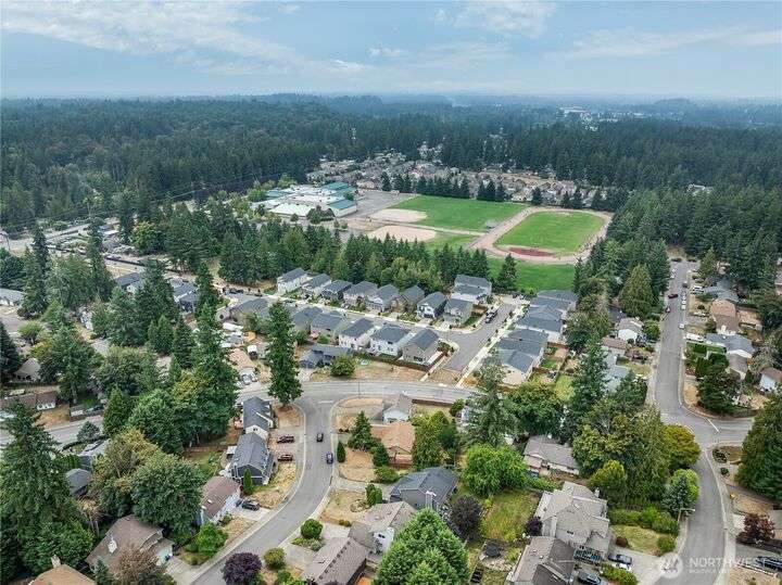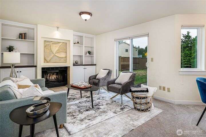 Nestled on a spacious corner lot in Timber Hills community, this home blends comfort and function in an ideal cul-de-sac setting. Step inside to a bright living room that flows effortlessly into the dining area and kitchen. A second living space with a cozy wood-burning fireplace opens to a private backyard with an oversized patio, perfect for summer BBQs, morning coffee, or evenings with friends. A main floor half bath adds convenience for guests. Upstairs, enjoy three comfortable bedrooms, a full guest bath, and a generous primary suite with ensuite. With a two-car garage, central AC, and easy access to lakes, trails, and shopping, this home truly checks all the boxes. Pre-Inspection Available.