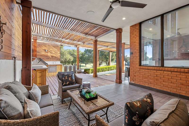 Welcome to this stunning, fully updated two-story home nestled in one of the areas most sought-after gated golf communities. From the moment you step inside, youll be greeted by soaring ceilings, expansive windows, and an abundance of natural light that highlights the homes open and elegant design.The thoughtfully updated interior offers modern finishes throughout, blending comfort and sophistication in every room. Perfect for both entertaining and everyday living, the home flows seamlessly from the spacious living areas to a chef-inspired kitchen and inviting dining spaces.Step outside to your private backyard oasisan entertainers dream. Enjoy the fully equipped outdoor kitchen, sparkling pool, and cozy fire pit, all overlooking serene green space and the beautifully manicured golf course. Its the ideal setting for relaxing evenings and weekend gatherings alike.Experience luxury living, resort-style amenities, and the peace of mind that comes with a gated communityall in one incredible home. This prime location is minutes away from restaurants, entertainment, grocery stores, and even DFW airport.