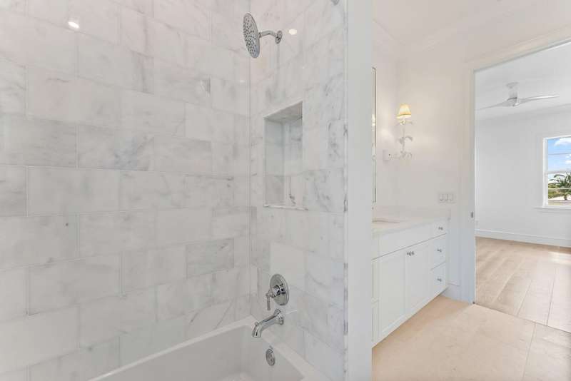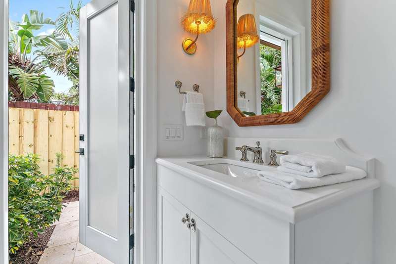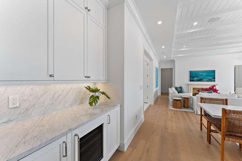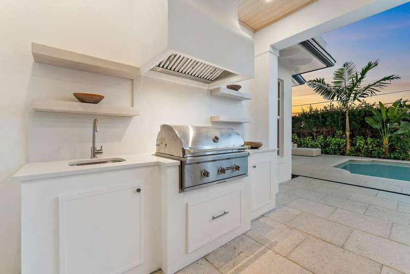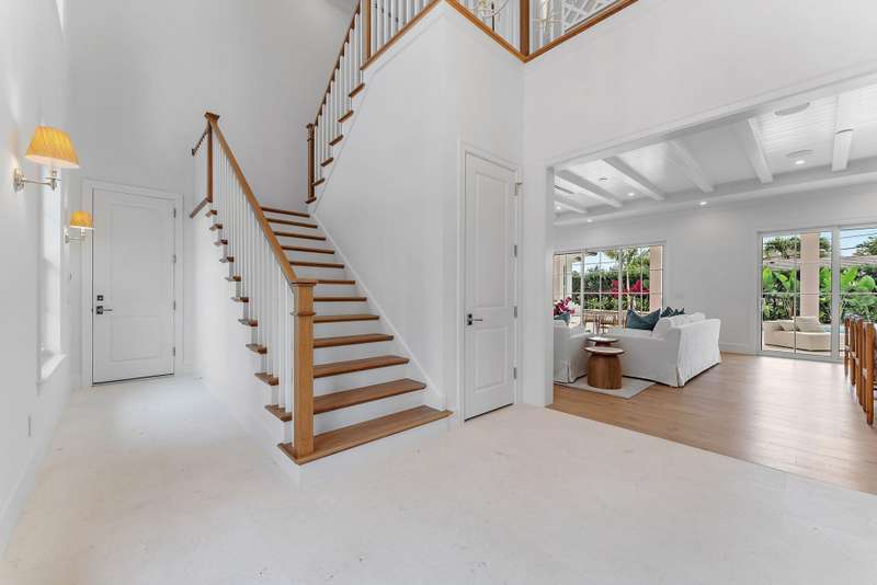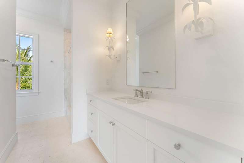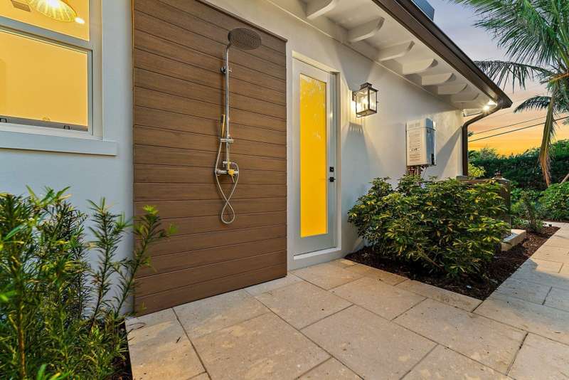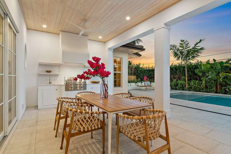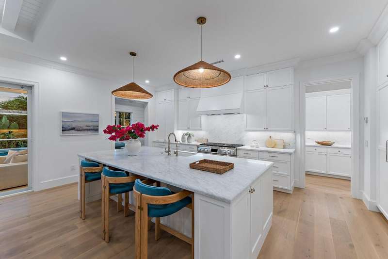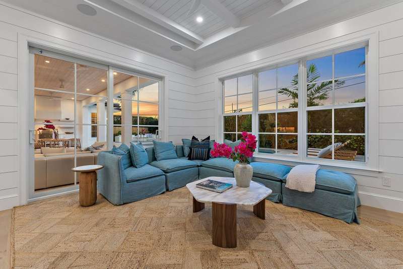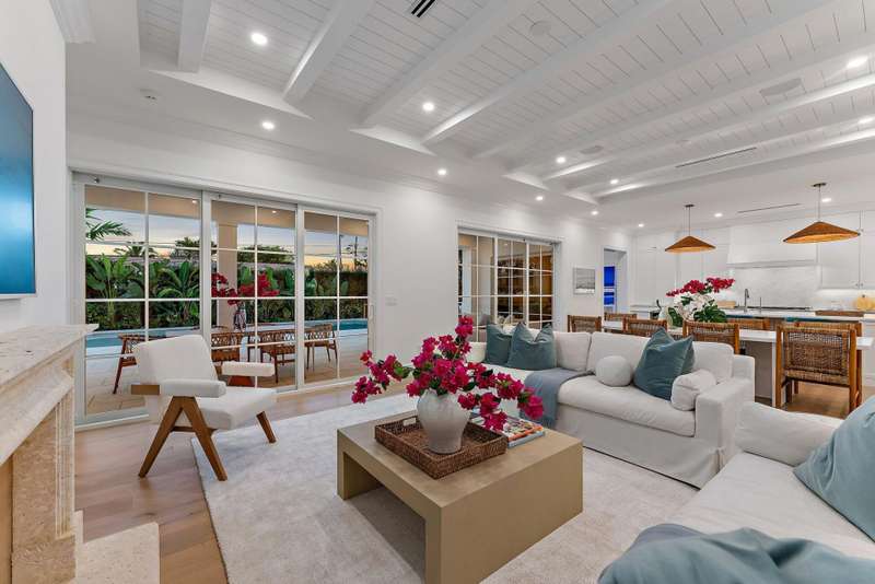 Easterly breezes await off of Lakeside Drive in this brand new construction estate, The Palm House, curated by RJS Builders. Architecturally stunning and nestled amongst beautiful garden views with approximately 5,574 square feet of indoor/outdoor space, 4,046 square feet under air, for a total of 4 full bedrooms, plus den, loft, and 4.5 bathrooms. Beyond the coral stone foyer and private office, an expansive living room with fireplace and dining area seamlessly transition under voluminous ceilings, with wood beams above white oak floors, each with uniquely orchestrated garden and pool views. Stately Chefs kitchen, prep pantry with second refrigerator, dry bar with wine cooler and ice maker, and counter seating for gatherings, is anchored by white cabinetry and select