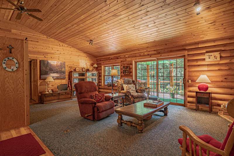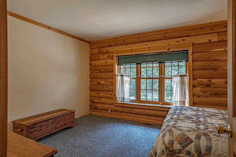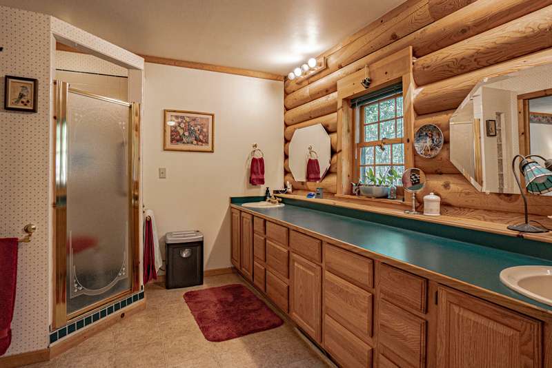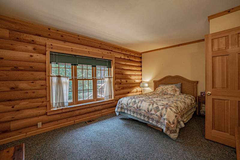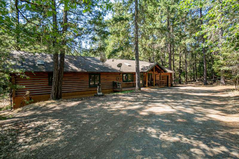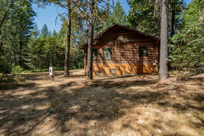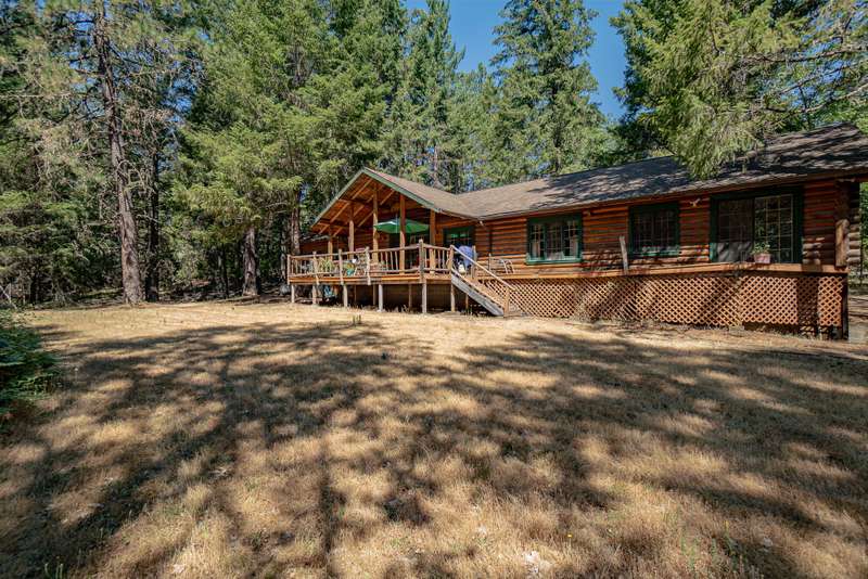 Rustic Charm Meets Modern Comfort. Step into serenity with this beautiful log home made of red fir, nestled on 5 acres of wooded landscape boasting marketable timber. This 4-bed, 2-bath haven offers the perfect blend of rustic charm and modern amenities. Upon entering, you're greeted with an open floor plan with exposed log beams. real hardwood floors and a wood stove, creating a cozy atmosphere. The kitchen features ample storage and a center island. The main floor hosts two guest bedrooms, a full bath and the large primary suite boasting a walk-in closet and generous sized attached bathroom. Downstairs, the 1,054 sq ft partially finished basement includes a bedroom as well as an additional space with endless potential, perfect for another bedroom, home office, or gym. Outside, the 5-acre property includes a deck overlooking the lush woods and seasonal creek, a hot tub, a 786 sq ft RV storage barn with power, and a garden area with fruit trees. Schedule your showing today!