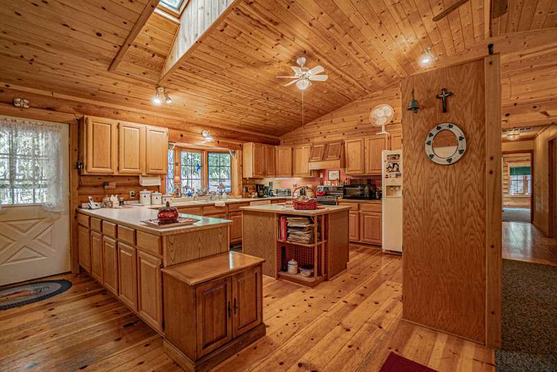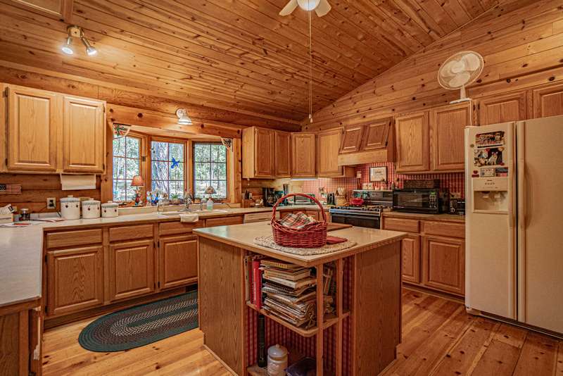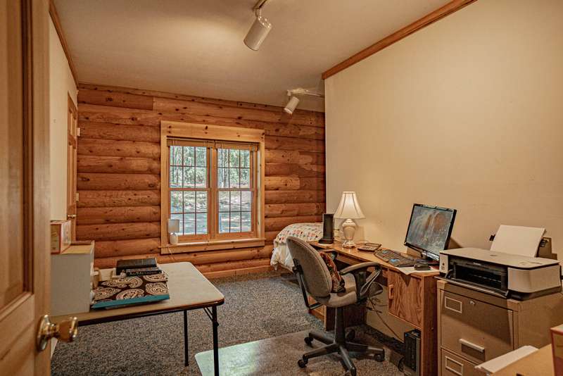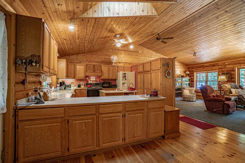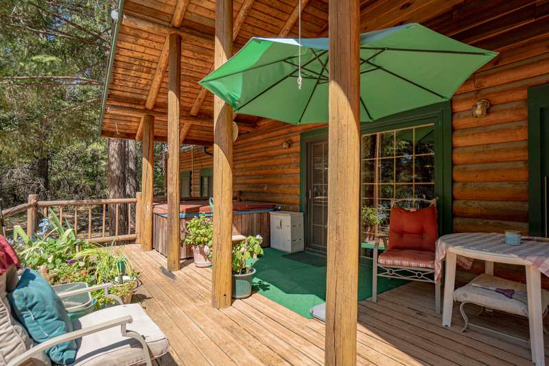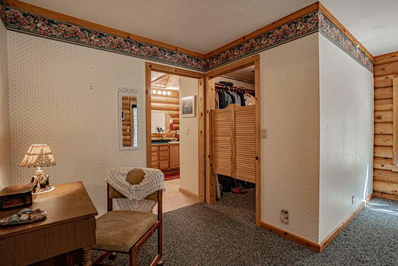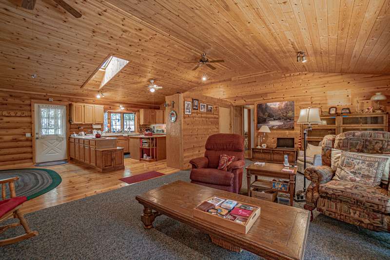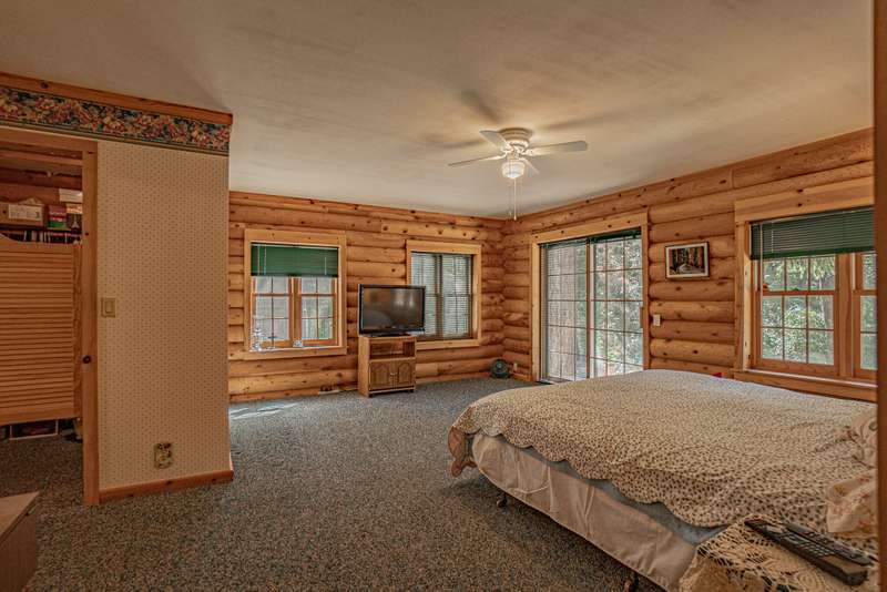 Rustic Charm Meets Modern Comfort. Step into serenity with this beautiful log home made of red fir, nestled on 5 acres of wooded landscape boasting marketable timber. This 4-bed, 2-bath haven offers the perfect blend of rustic charm and modern amenities. Upon entering, you're greeted with an open floor plan with exposed log beams. real hardwood floors and a wood stove, creating a cozy atmosphere. The kitchen features ample storage and a center island. The main floor hosts two guest bedrooms, a full bath and the large primary suite boasting a walk-in closet and generous sized attached bathroom. Downstairs, the 1,054 sq ft partially finished basement includes a bedroom as well as an additional space with endless potential, perfect for another bedroom, home office, or gym. Outside, the 5-acre property includes a deck overlooking the lush woods and seasonal creek, a hot tub, a 786 sq ft RV storage barn with power, and a garden area with fruit trees. Schedule your showing today!