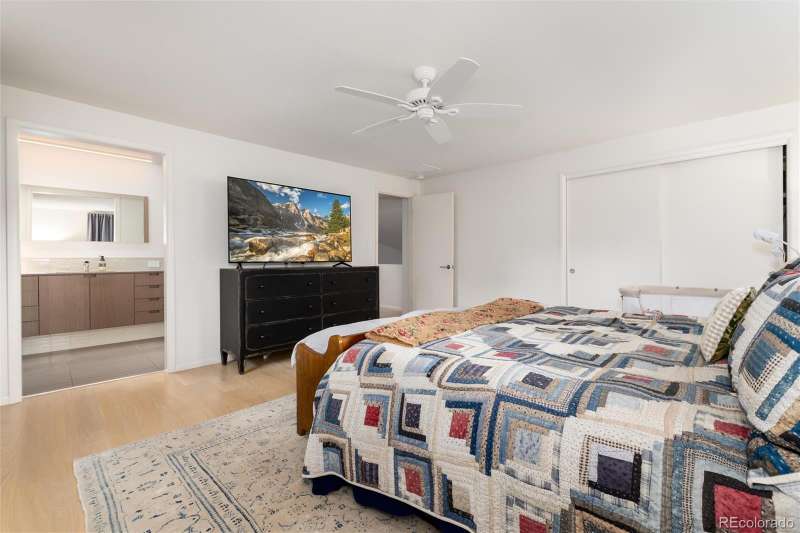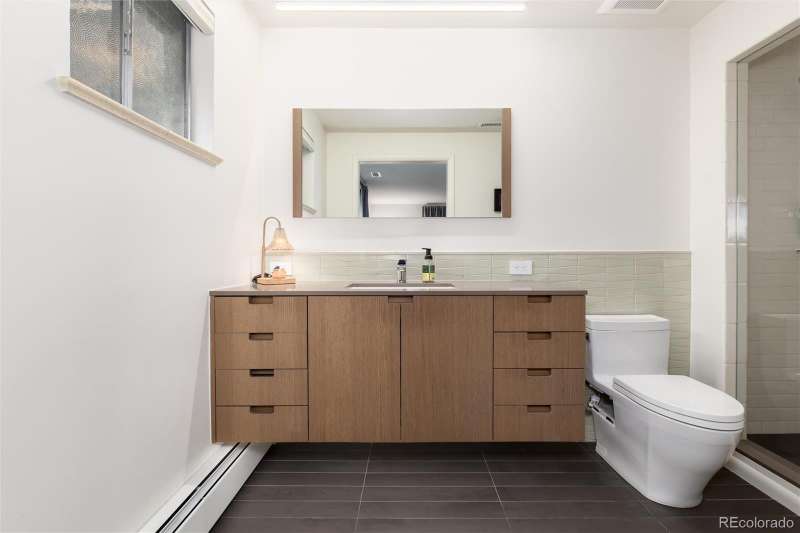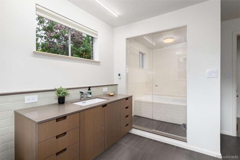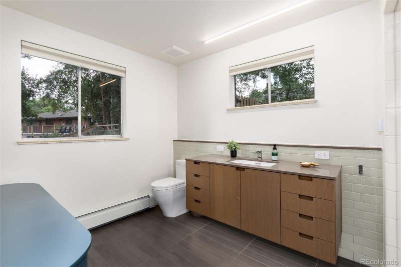 Spectacular Mid-Century Modern Renovation in Beautiful Applewood Grove. 4 Bed | 3 Bath | Renovated in 2018 | Built in 1961. Welcome to a masterfully renovated mid-century modern gem nestled in the highly desirable Applewood Grove neighborhood. Originally built in 1961, this spacious 4-bedroom, 3-bathroom residence was completely reimagined in 2018 by one of Denvers premier builderscrafted for his personal use using only the highest quality materials and finishes. Step inside to discover clean lines, warm natural light, and understated luxury throughout. The open main level features a sun-drenched living room with the original wood-burning fireplace, an elegant dining area, and a sleek chefs kitchen adorned with custom cabinetry, Wolf/Sub-Zero appliances, and a seamless flow ideal for entertaining. On the upper level, youll find three spacious bedrooms, all graced with wide-plank European white oak flooring. The primary suite offers park-like views, generous closet space, and a private spa-inspired bath with heated floors. Half a level down, the walk-out lower level is designed for comfort and relaxation, featuring tile flooring, a cozy family room with fireplace, a guest bedroom, and a luxurious spa bathroom complete with a steam room. The finished basement includes a media room with surround sound, a large laundry area, and abundant storage for your lifestyle needs. Outside, experience a private sanctuary on a beautifully landscaped lot with mature trees, blooming perennials from spring to fall, a fully fenced backyard, and even an herb and vegetable garden just steps from the kitchen. The Applewood Grove neighborhood retains all of its mid-century charm with convenient access to Denver West, Jefferson County open space parks, and a quick commute to Downtown Denver. Exceptional features include: Lutron lighting control & automated shades, Radiant baseboard heat, Heated floors in the primary and spa bathrooms, Carrier central A/C, Whole-house audio system.
