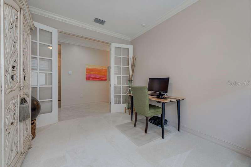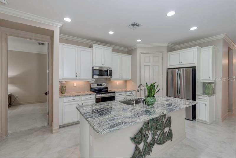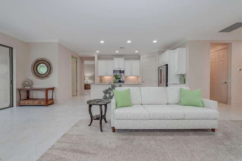 Not like all the others! Immaculate 2/2 with French doored den currently an office, can flex into a workout room or 3rd bedroom. The great room and primary bedroom easily accommodate larger furniture. The guest area is welcoming and private. Cooking is a breeze in this galley kitchen with corner pantry, and the adjacent expanded utility room will manage all your extra general storage needs. The sliders lead to a fully screened lanai and private backyard retreat. Home is located on a low traffic street within the community. Feel safe and secure with brand new Storm Smart hurricane shades for the lanai and easy close accordion shutters throughout. Culligan whole-home filtration system with reverse osmosis at kitchen sink. Neutral saturated color palette is both timeless and trending. Leviton Decora switches, outlets, and dimmers. New light fixtures and fans round out the major enhancements. The owner covered it all for you, just move into this better than new home. Toscana Isles offers many clubs and activities, and a regular rotation of food trucks to enjoy. Catch your dinner, the expansive connecting lakes allow fishing. Don’t miss the sunrise over the heated zero-depth infinity pool, which also hosts community parties. Plus a fitness center, pickle ball courts, clubhouse, and dog park.