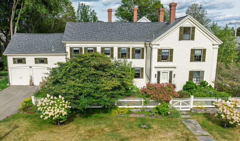 This elegant and spacious antique home has been fully and meticulously restored, blending timeless character with modern amenities. Set on a .5-acre lot in the heart of Yarmouth Village, the property offers a rare combination of historic charm and contemporary comfort. Inside, you'll find six bedrooms and 3.5 baths, including an incredible double living room with two wood-burning fireplaces, a formal dining room with its own fireplace, and custom built-ins that showcase the home's craftsmanship. The interiors are enhanced with gorgeous wallpaper, painted floors, and fabulous details throughout, while an electric heat pump system provides efficient heating and air-conditioned comfort year-round. Step outside to a stunning, fully enclosed and private gunite pool, perfect for relaxing or entertaining in your own backyard oasis. This home's location is truly exceptional - coveted Yarmouth Village offers a vibrant coastal village lifestyle, with schools, the library, farmers market, and restaurants all just a short stroll away. With its unique character, thoughtful updates, and convenient proximity to Portland, this home is a rare opportunity to enjoy the very best of Maine living.