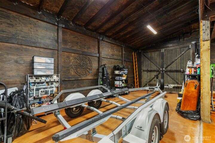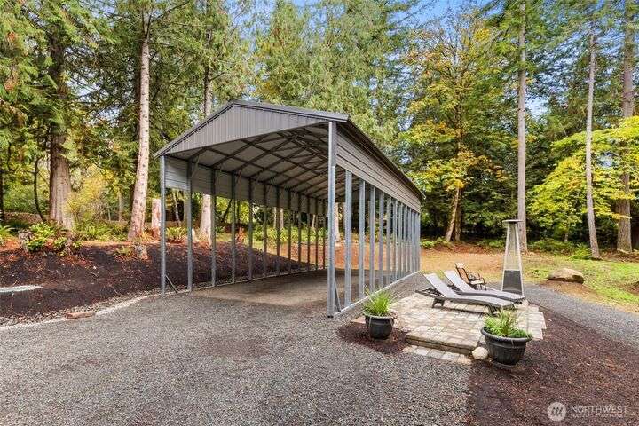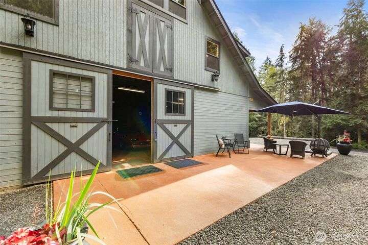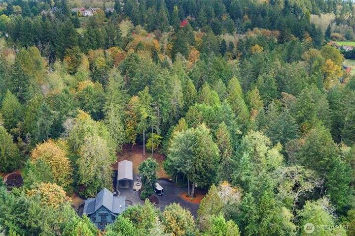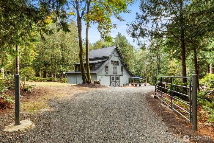 Enjoy the solitude of a pastoral 5 acre parcel, boasting a 3,200 sq ft classic barn. A total of 5 covered parking spaces, adjacent covered boat parking, and covered 18’ X 45’ RV parking pad with convenient access to power and water. Barn features new gutters, vinyl windows, exterior stain, and new composition shingle roof. Add your dream home to make this fairytale property complete! Future development opportunities are possible, as zoning is 1 unit per 2.5 acres. Networks of walking, biking and UTV trails wind gently through the trees. Future construction on the southwest end of the property could result in Eagle Harbor views! Seclusion and tranquility, all within moments of ferry service, shops, restaurants, and downtown Winslow.