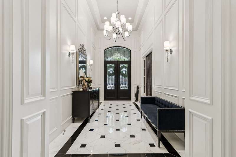 Welcome Home to this impeccable ONE STORY, 8 CAR garage home in the Exclusive Guard Gated neighborhood of Quail Hollow, Westlake! Perfectly custom designed for elegant entertaining & everyday living, this home boasts European inspired stone exterior design, high end of custom finishes, exquisite hardware, wood + marble flooring, custom designed draperies throughout. Welcome your guests through the impressive circular drive to a grand Foyer and Executive Study. The open plan Great rm area, boasts a warm Family rm w a beautiful cast stone fireplace & a wall of sliding Pella doors that brings the outside in. The spacious sunlit Dining rm also has sliding Pella doors to the outdoor living & kitchen area. The Chef's Kitchen is a Dream, w top of the line appliances, custom designed stainless steel vent hood + huge island perfect for gathering. Adjoining the Kitchen you will find a fully equipped Prep Kitchen for all your entertaining needs. Enjoy the evening in the large Family Game rm complete w Wet Bar & separate Media rm for your home viewing enjoyment. The Primary Suite is stunning w designer finishes + custom ceiling molding, marble floors & laser cut accents, spacious Spa Bath & 2 large custom Closets. Two Additional Bedroom Suites enjoy lovely bathrooms & walk-in closets. Guests will never want to leave once they enter the private Casita - Guest Quarters w banquette Dining area, Kitchenette, Liv Room w fireplace, luxury hotel quality Bdrm suite & Bath. Step outdoors to enjoy an expansive screened Liv area w fireplace + Din area & Outdoor Kitchen featuring a large grill, sink, storage & gas Pizza Oven! Enjoy your own Orchard w 22 producing Fruit trees & a working organic garden w raised beds. Tons of grass for everyone to run & play, plus mature trees. Thermally efficient w Pella windows & doors, plus full foam encapsulation. Laundry room accommodates dual washers & dual dryers. Incredible 8 Car tandem Garage w high ceilings, epoxy floors & tons of storage!
