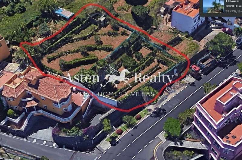 Urban plot of 900 m2, ideally located in the center of El Sauzal, just 200 m from the Plaza de Ayuntamiento and 380 m above the sea. Very well connected, with the northern motorway 1 km away.