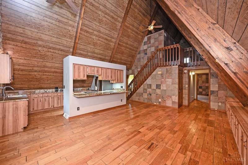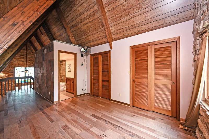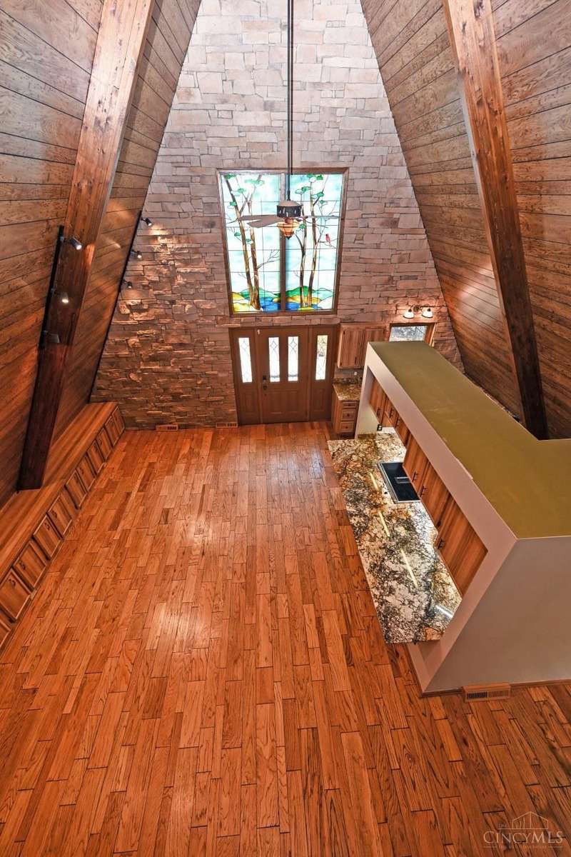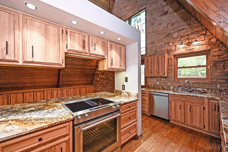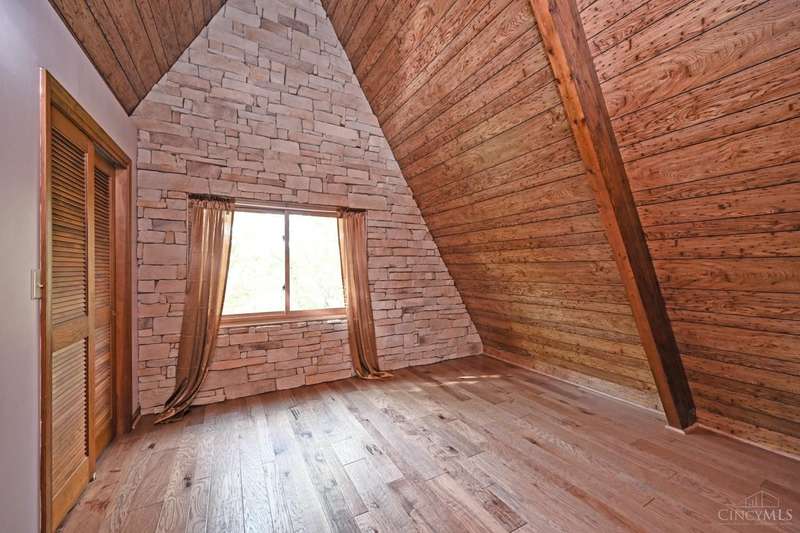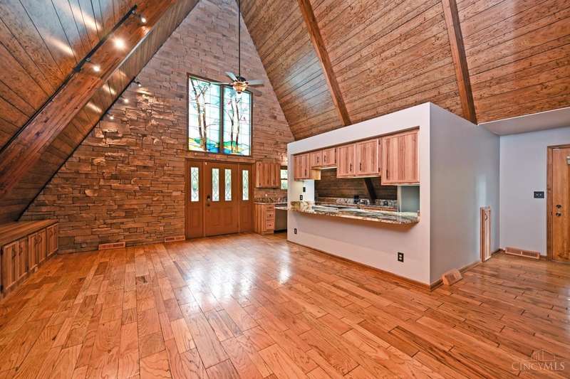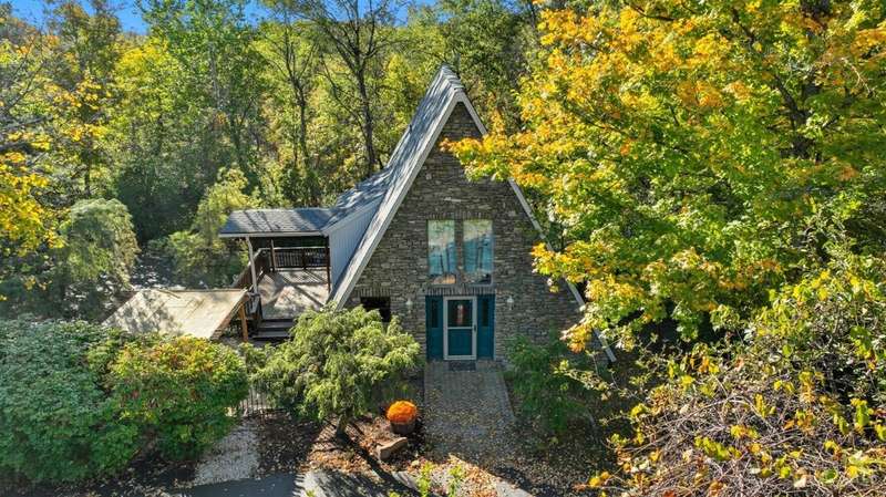 Stunning stone A-Frame situated on 3.10 acres down a long private drive with updates galore!! Custom stonework, hardwood floors, beamed ceilings, a full finished lower level and updated kitchen and baths. This tranquil setting offers an abundance of natural beauty, wildlife and privacy. First floor laundry, oversized garage and great outdoor entertaining space, including a covered deck and paver patio fit perfect for any lifestyle. The ideal mix of country living but with the close proximity to highways and entertainment. You will not be disappointed in this special home.