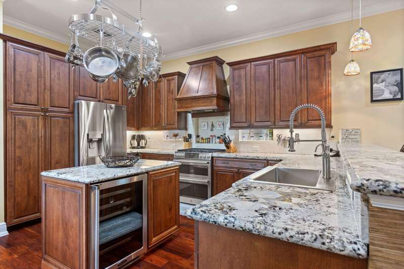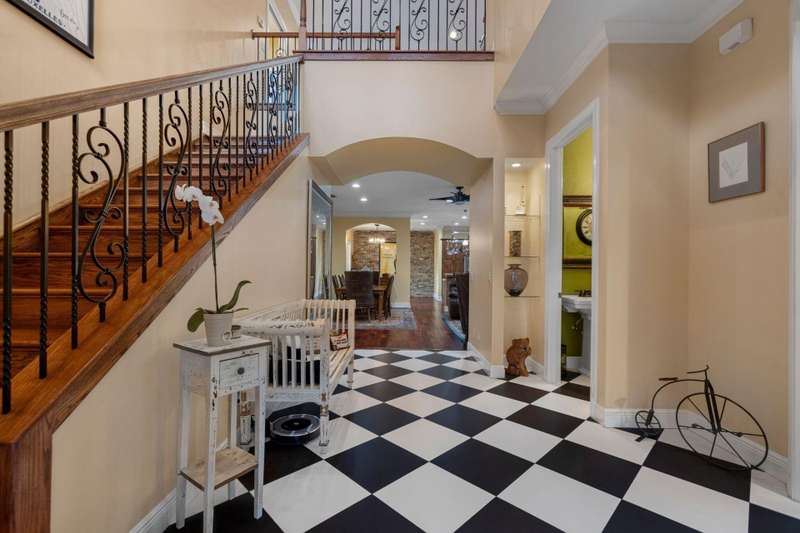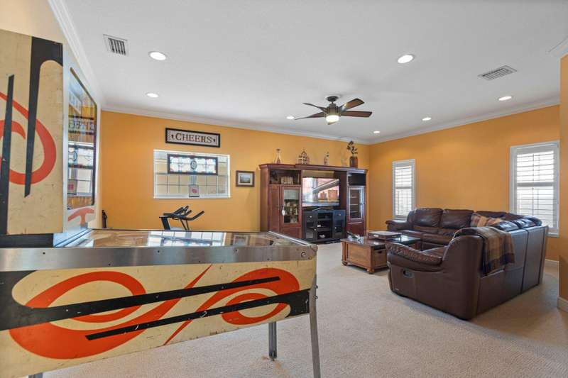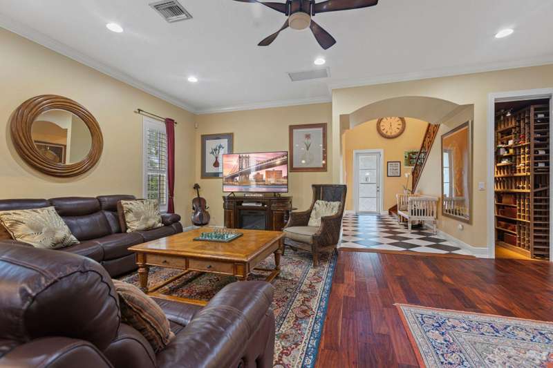 Welcome to Hamilton Place, Palm Citys hidden gem! Nestled in an exclusive gated community of just 24 homes, this sprawling Key West style residence offers 3,976 liv. Sq. ft., 5 bedrooms, 4.5 baths, and a 2 car garage. A whimsical front entry invites you into a light-filled open layout for living, dining, and kitchen, featuring a dedicated flex/office space and a private in-law/guest suite complete with a kitchenette and full bath, ideal for multi-generational living or extended stays. The chefs kitchen boasts gas cooking, granite countertops, SS appliances, and a cozy wine nook tucked under the stairs off of the dining area. Enjoy the peaceful, private backyard with a Jacuzzi spa, retractable awning, and lush tropical landscaping. Your own personal oasis. One upstairs bedroom features a private balcony, perfect for morning coffee or unwinding in the evenings. Dont miss this rare opportunity to own a beautifully maintained and generously sized home in one of Palm Citys most exclusive communities, homes here seldom hit the market!