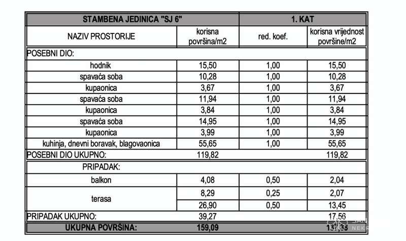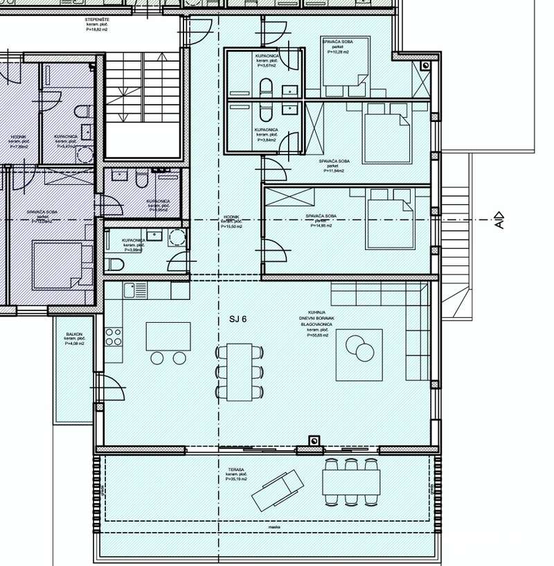 Apartment S-6 - 1st floor - living area 119.82 m2 (3 bedrooms + 3 bathrooms) + terrace (35 m2 - NW) + balcony (4 m2 - SE) + garage parking space + storage in the basement, net calculation area 146,84 m2 = 660,780 EUR