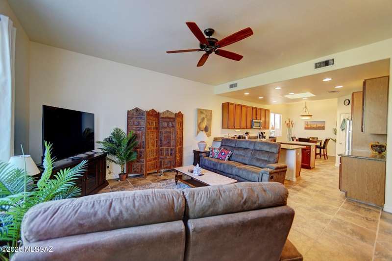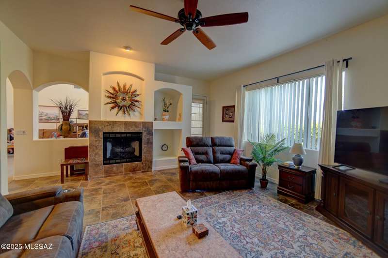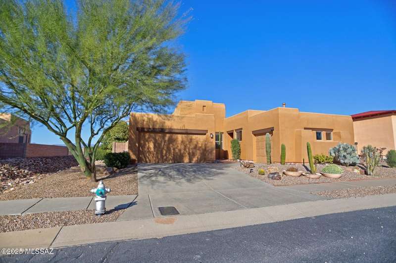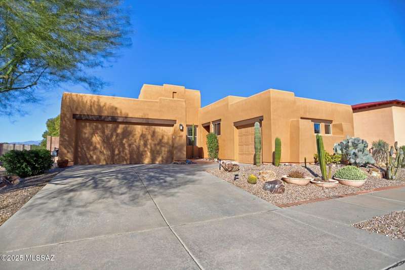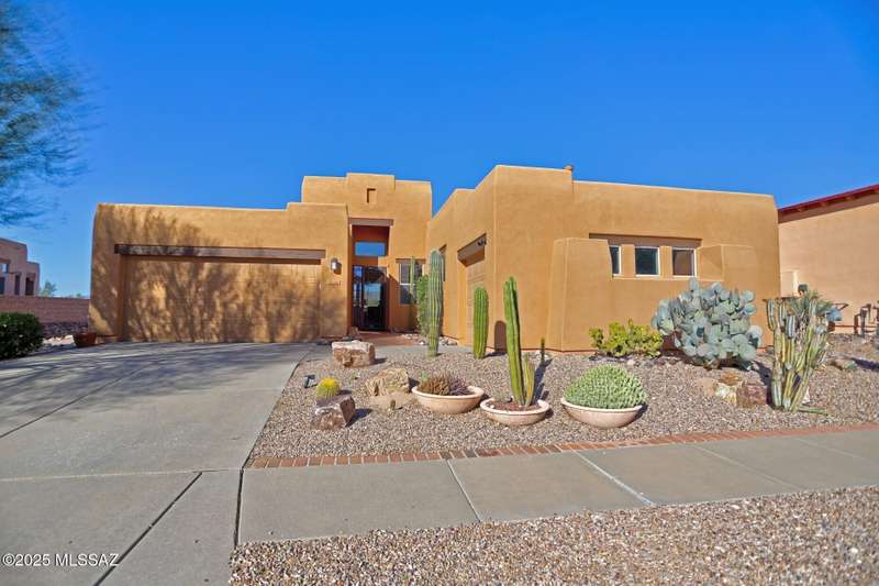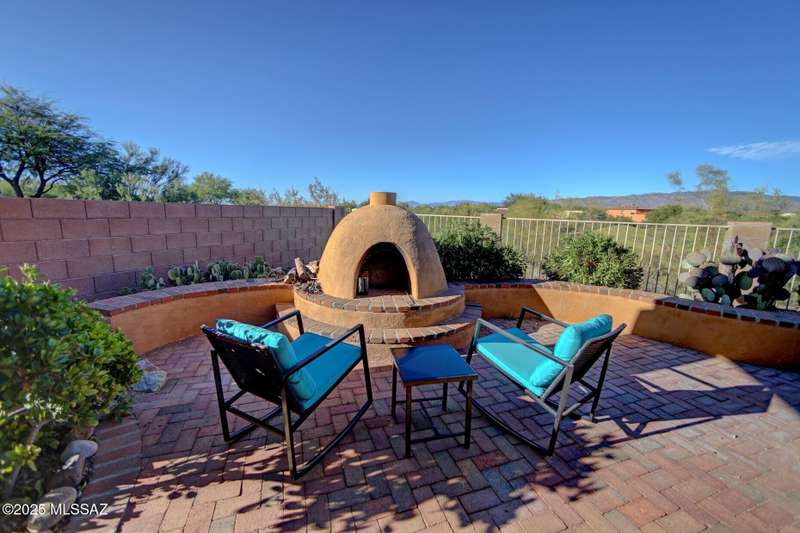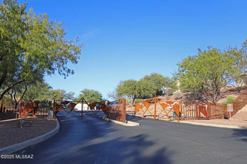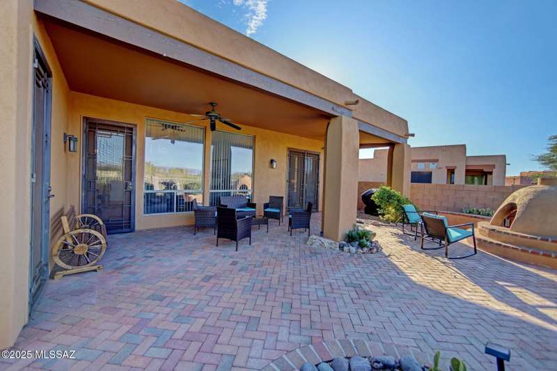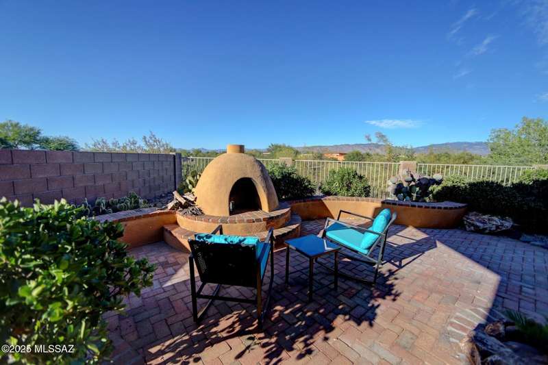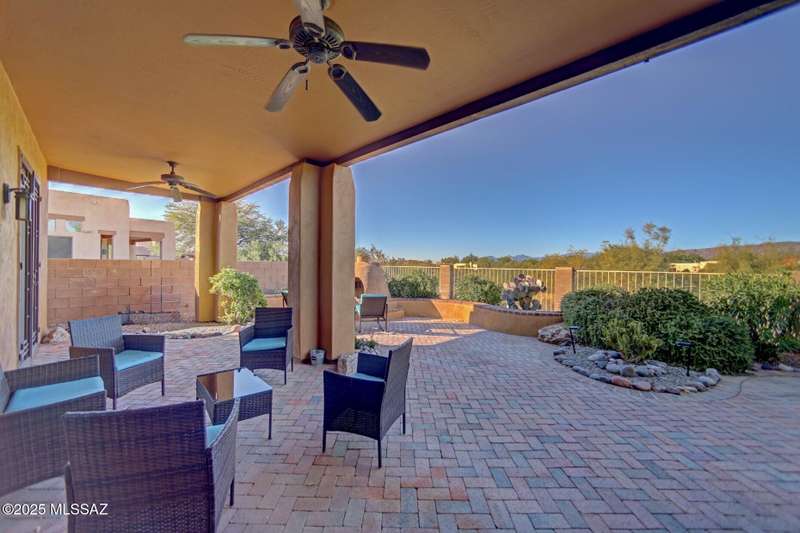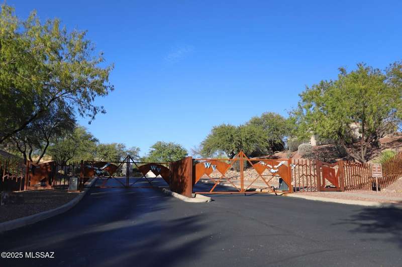 Located in the very desirable gated Wingview at Rancho Del Lago, this former model home is a must see. The beautiful desert landscaping welcomes you, The gracious entry opens to a large living dining combination with high ceilings.This home features a split bedroom floorplan. The primary bedroom is exceptionally roomy & can accommodate very large furniture. The primary bath was remodeled by the current owners. The kitchen has lots of cabinets & work areas, granite counters, stainless appliances & breakfast area. It opens to a family room with fireplace & creates a great gathering space for entertaining.. The oversized, paved, covered patio has multiple seating areas including in front of the charming bee hive fireplace. Golf course, mountain and panoramic views complete this lovely home