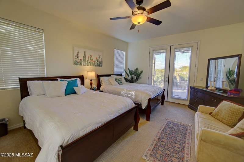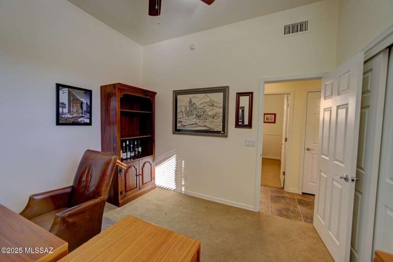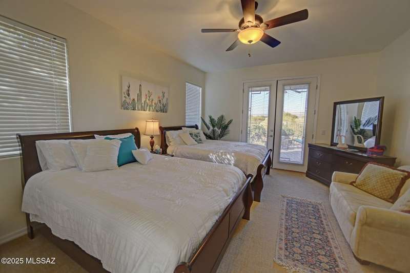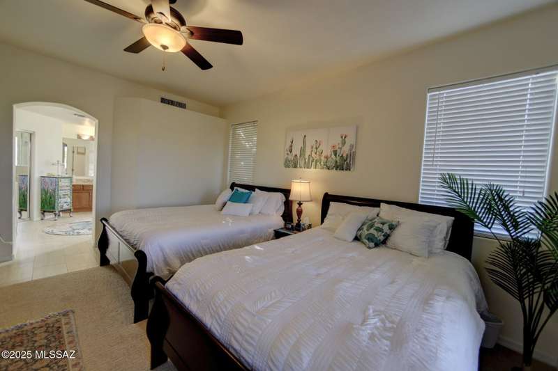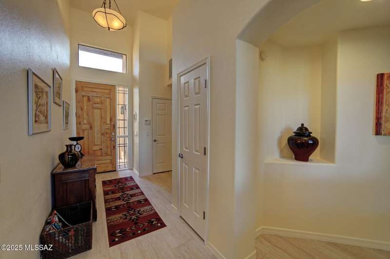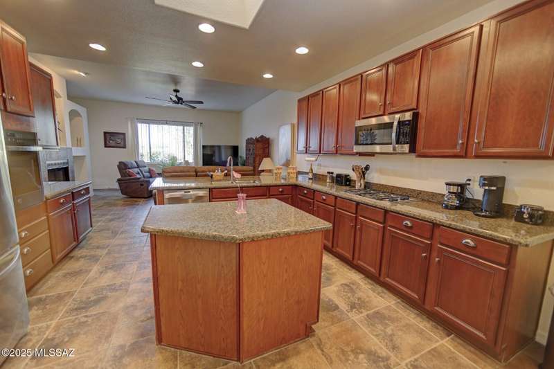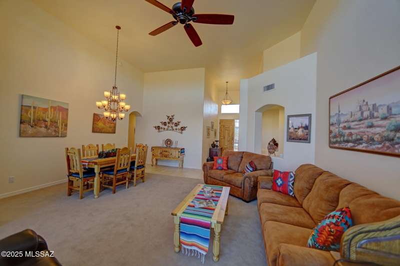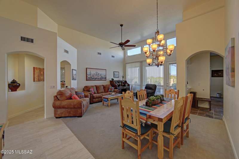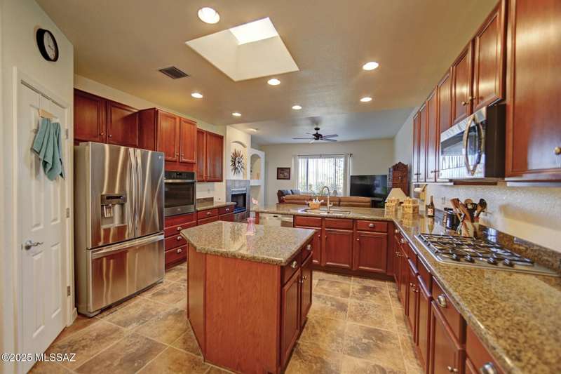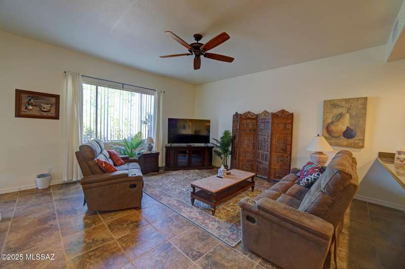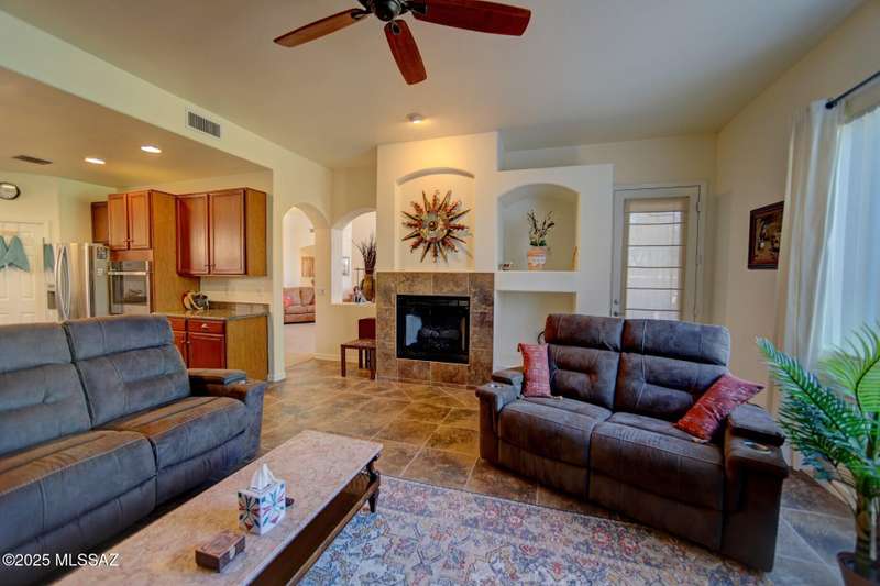 Located in the very desirable gated Wingview at Rancho Del Lago, this former model home is a must see. The beautiful desert landscaping welcomes you, The gracious entry opens to a large living dining combination with high ceilings.This home features a split bedroom floorplan. The primary bedroom is exceptionally roomy & can accommodate very large furniture. The primary bath was remodeled by the current owners. The kitchen has lots of cabinets & work areas, granite counters, stainless appliances & breakfast area. It opens to a family room with fireplace & creates a great gathering space for entertaining.. The oversized, paved, covered patio has multiple seating areas including in front of the charming bee hive fireplace. Golf course, mountain and panoramic views complete this lovely home