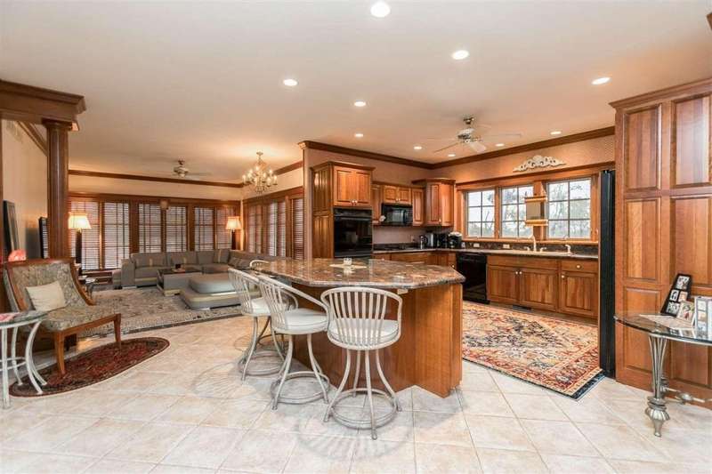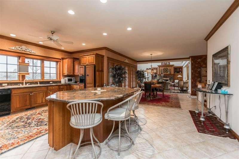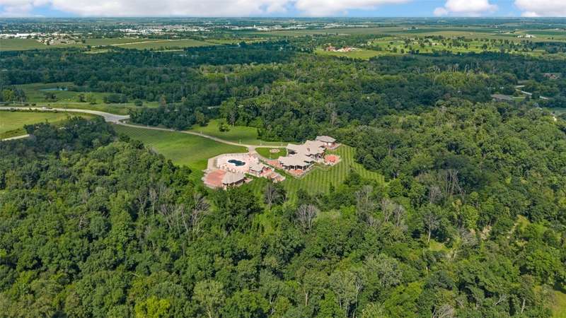 One-of-a-kind sprawling acreage in Linn Mar School District! Have your own special place in this nearly 8,000 finished SqFt. 2 story home on 26.69 acres. This majestic home offers foyer with cathedral ceilings, granite flooring and grand chandelier. Walk thru the artistic pillars and into the timeless great room. Discover granite floors, gas fireplace with custom built-ins, state of the art surround sound and access to patio and backyard. Elegant tiling draws seamlessly into the gourmet kitchen which boasts oversized granite island, granite countertops, double sink, walk in pantry, dining area and state of the art appliances that stay! Grab a book and catch up on your reading in the warm sunroom that offers luminous windows and great views of the backyard. Elegant formal dining is also featured on main level with granite flooring. Escape to the master suite wing and relax in the massive master bedroom that has gas fireplace, sitting area, granite flooring, access to own deck and master bath with walk in closet, his-and-her sinks, separate tile standing shower, make up area and whirlpool tub. Finish the main level off with full bath, half bath, den/study and main level laundry. Take the spiral granite staircase to the 2nd level and be greeted by the catwalk that overlooks the foyer and great room. One either side of the catwalk there are identical bedrooms. Each bedroom has its own access to a deck, private full baths, walk in closets and open the double French doors to the balcony that overlooks the great room. Walkout lower level is just as fabulous as the other two levels. Vast rec room with gas fireplace with brick surround, dining area, 2 spacious bedrooms with walk in closets, full bath with glass standing shower and workout gym with every weight and machine you could think off! Entertainment patio, multiple decks and multi-level patios all provide you will ample views of the wooded backyard. 2 4-car detached garages and 1 3-car attached garage supply you with drains and are equipped with heating and Air condintioning. Huge awnings tower over the driveways and provide plenty of shade, can lighting and ceiling fans. Great for outside parking or entertainment space. Soak up some rays next to the in ground pool with outside gas fireplace and pool house that is just as grand as the main house: full bar, cherry cabinets, surround sound, granite floors and full bath. Additional features include: Wrap around driveway, imaginative lighted fountain, security/sound/irrigation system.