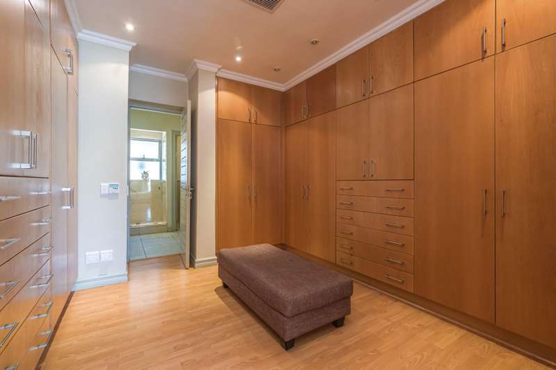 Spacious walk in dressing room with ample built in cupboards