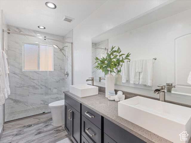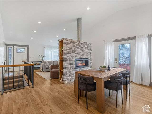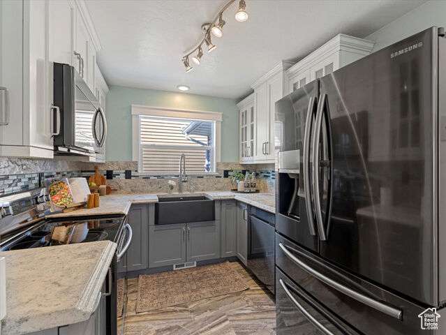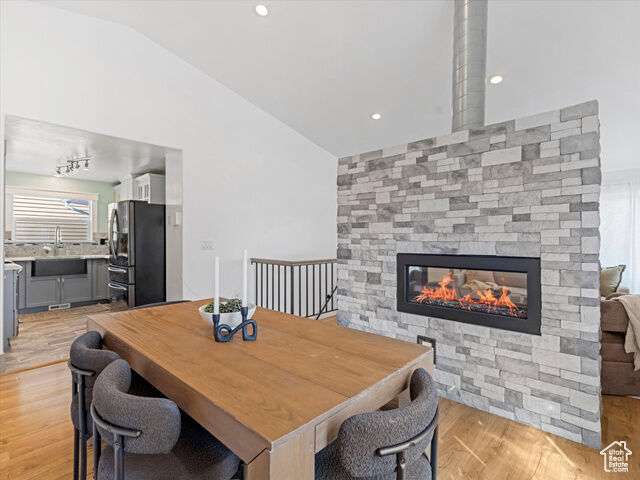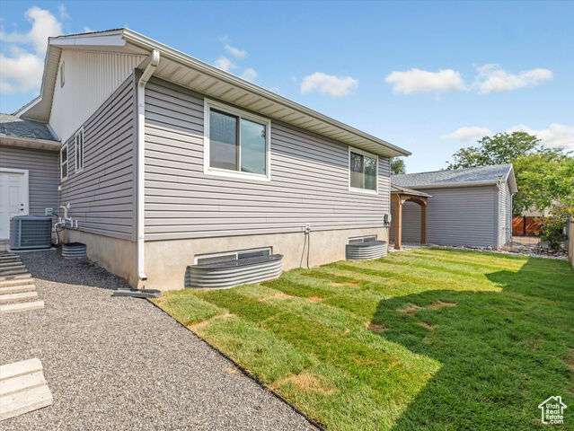 This Immaculate Rambler sits on a nice corner Lot and has been beautifully updated with vaulted ceilings, tile entry, cozy fireplace, and low-maintenance flooring. The primary suite offers fresh paint and a fully remodeled bathroom for a private retreat. Step outside to a large, newly fenced yard( twice the average lot size) -with garden boxes, a shed, and a covered patio perfect for entertaining. Downstairs features epoxy flooring in the entertainment room and bedroom, plus a versatile bonus room ideal for a gym or guest bedroom. Modern upgrades include newer HVAC, a tankless water heater, humidifier, double-pane windows, and a detached extra height 2-car garage with fenced RV parking space as well. A perfect blend of style, space and functionality! Square footage figures are provided as a courtesy estimate only and were obtained from County Records. Buyer is advised to obtain an independent measurement.