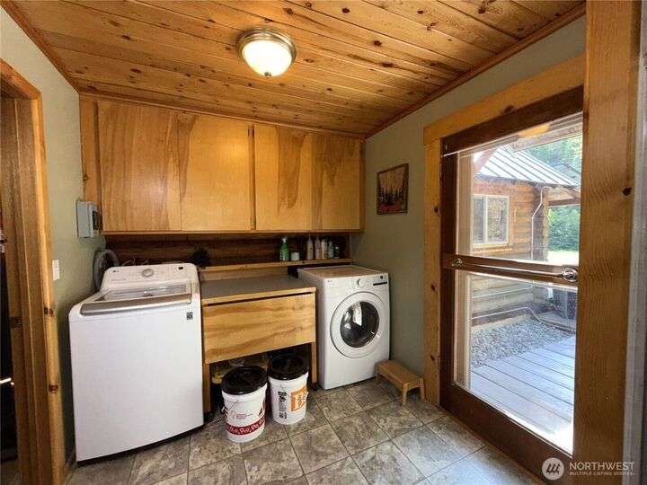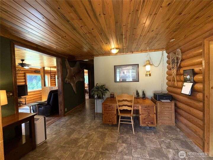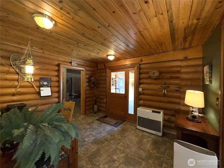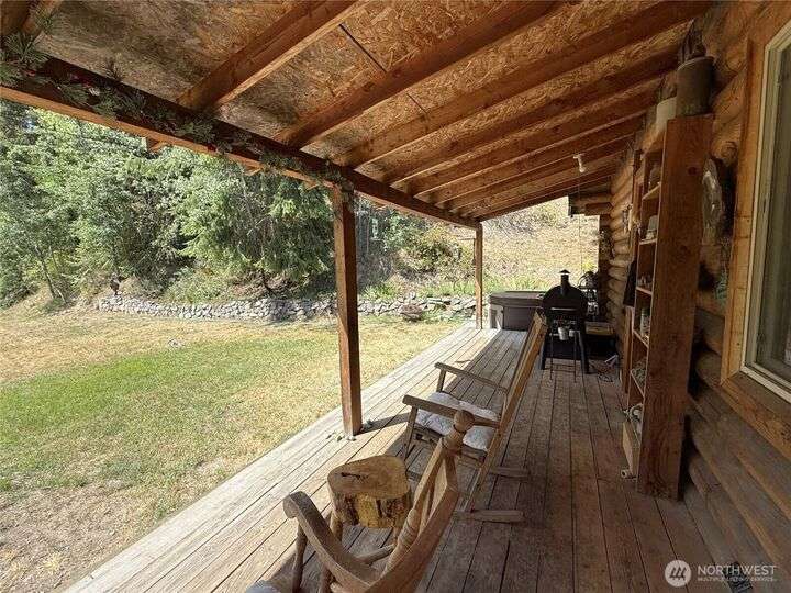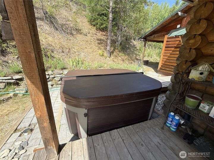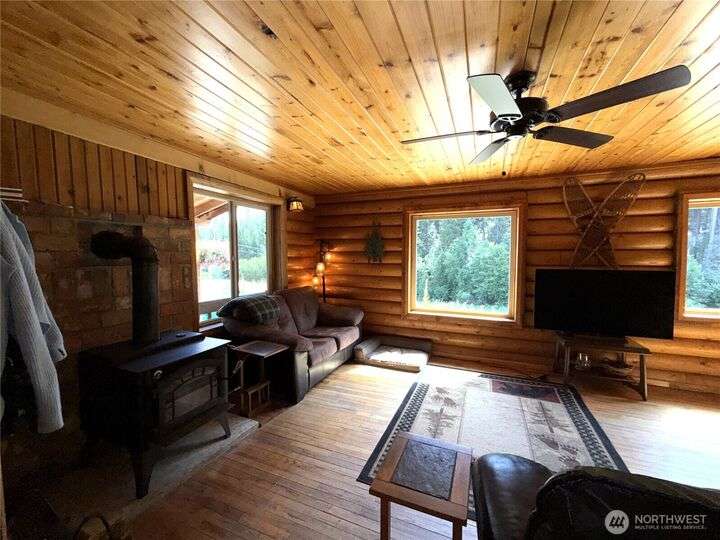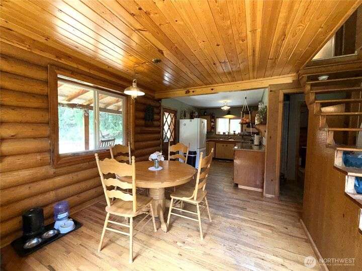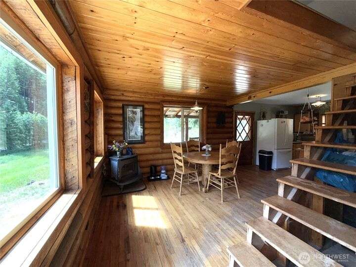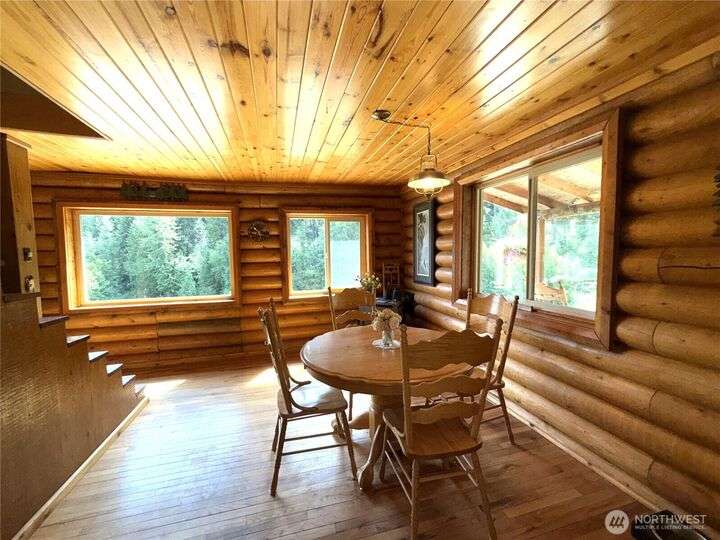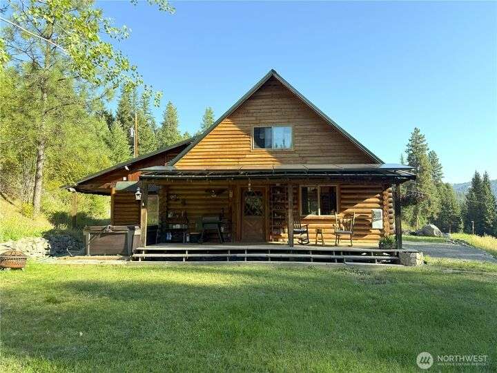Charming log home in immaculate condition, nestled in the trees just minutes from town. The inviting first floor features a bright front room, kitchen, huge primary bedroom and covered front and rear porches. A hot tub is conveniently located off the rear deck. The house has a new metal roof, covered carport with lots of wood storage and root cellar. The large shop has a concrete floor and wood stove. The 10K solar system creates a net gain in power with all new top of the line equipment. This property has so much to offer!