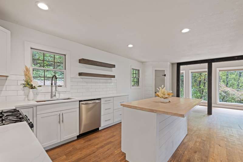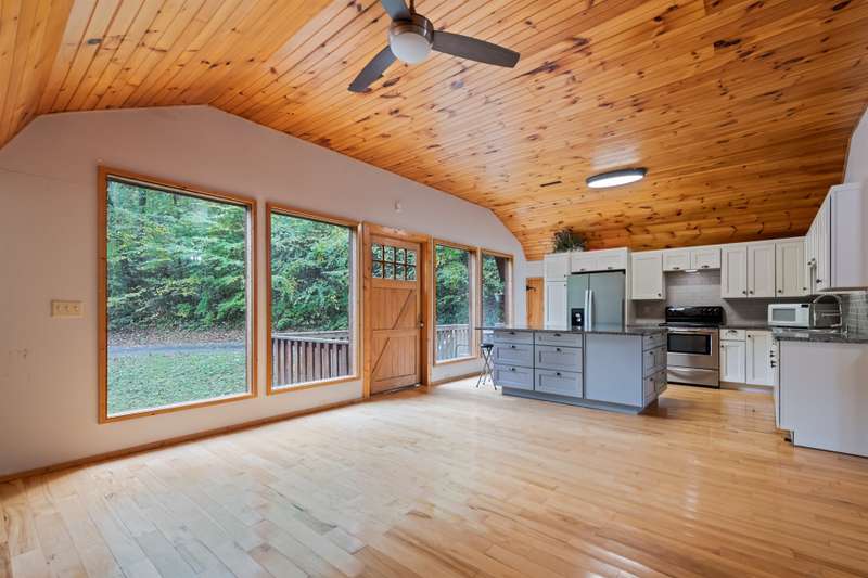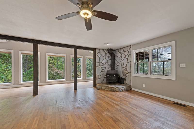 Private 11+ acre homestead with pond, stream, and wooded mountain views! Spacious 2-level main home with 3BR/2 BA, plus covered deck to enjoy nature. Detached 1100 sqft garage/workshop with extra storage, plus bonus 2 BR/1 BA apartment ? ideal for guests or creative space. Endless possibilities for DIY projects, gardening, or outdoor hobbies. Peaceful, secluded property just minutes to town, 8 mins to the interstate, and 25 mins to Asheville. Perfect for buyers seeking privacy, acreage, water features, and a flexible, nature-focused lifestyle.Second living quarters (apartment) is not on a permitted septic system, but the tank is functioning properly. Property has a spring water source. Buyer credit offered for flooring in the main house. Total Heated and Unheated Area Measured is approx. 5458 Square Feet.