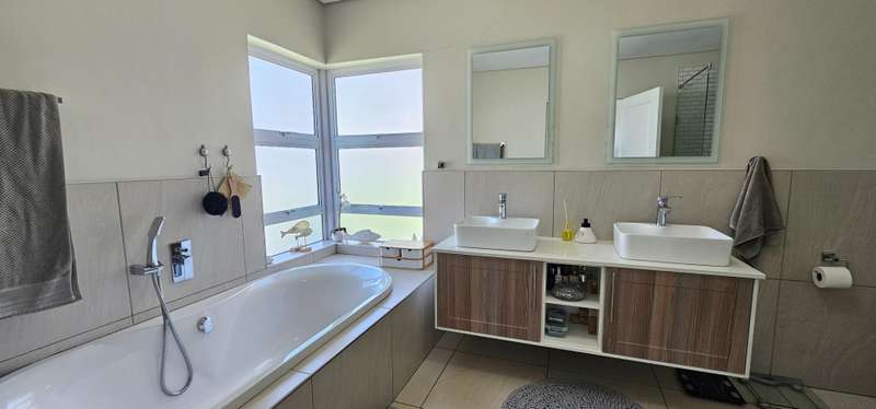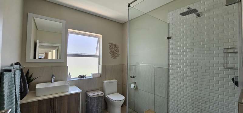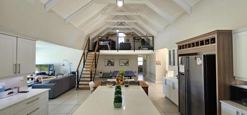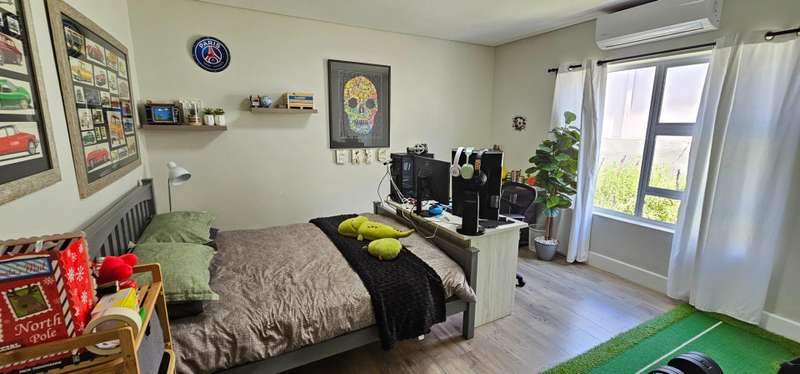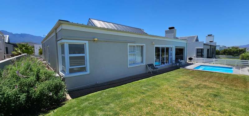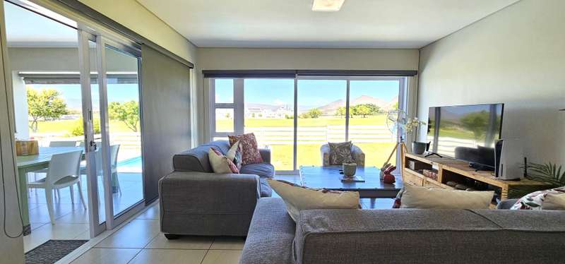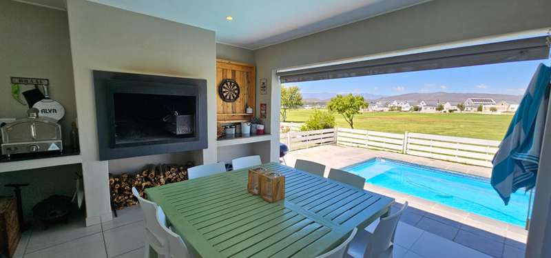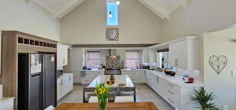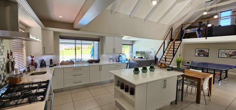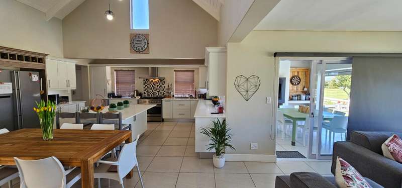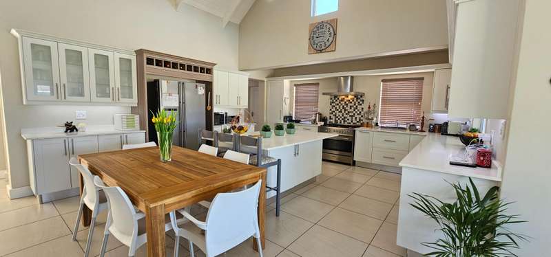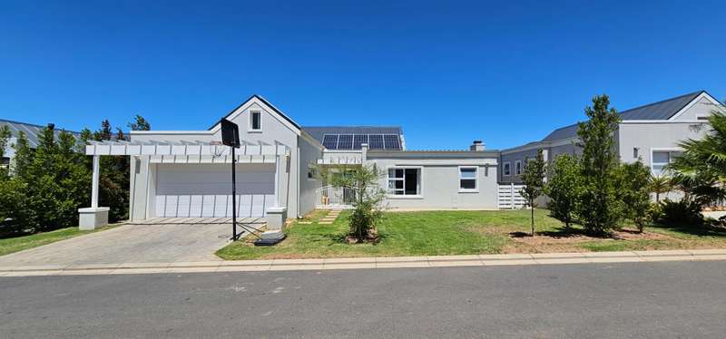 EXCLUSIVE MANDATE: Step into the stunning double-volume living area and experience its light, airy ambiance. Thoughtfully designed, the modern kitchen features sleek countertops, ample cupboard space, and spacious scullery. Sliding doors open onto an enclosed patio with a built-in braai, offering breathtaking views of the renowned Silwerstrand golf course and surrounding mountain range?Çöjust one of the many highlights of this exceptional property. Enjoy the best of country living with three well-appointed bedrooms, all with built-in cupboards. Two of the bedrooms boast en-suite bathrooms, while a guest facility adds convenience. Large windows flood the home with natural light, enhancing the inviting open-plan living area. Striking pendant lights complement the double-volume ceilings, creating a warm and elegant atmosphere. The stylish kitchen, complete with a gas stove and a serving window to the patio, seamlessly connects indoor and outdoor spaces. An automated double garage provides direct access to the home. Additional features include air conditioning, a solar and inverter system, automated irrigation, fiber internet, and a sparkling chlorine swimming pool.