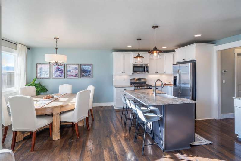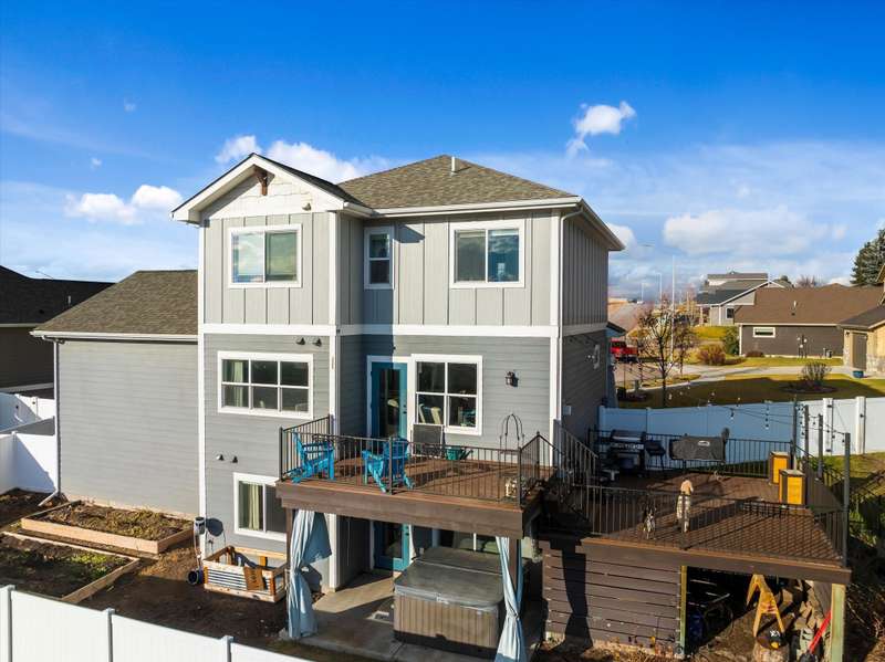 A seamless blend of modern craftsman style and a sought after location come together for this perfect blend of cozy and spacious in this generous 5 bedroom- 4 bath home. This wonderful home features three floors of well laid out living space. The main floor boasts a lovely, light and airy kitchen with granite countertops that flows naturally into the dining area and living room with appreciable size windows and and inviting gas fireplace. The second level is home to the primary suite, two bedrooms and two full baths. Head downstairs and you'll enter the comfy family/TV room with full walk out to a patio area with a hot tub, along with two more bedrooms and a full bath. One of the really great features of this home is the arranging, planning and creating of the exterior space. Multi level decks can be accessed from the lower level and the main level. The yard is fenced for privacy on an oversized lot in a quiet neighborhood.
