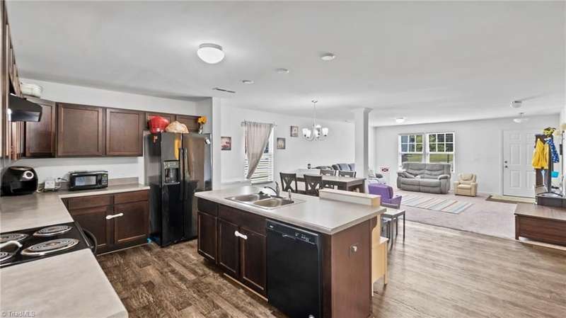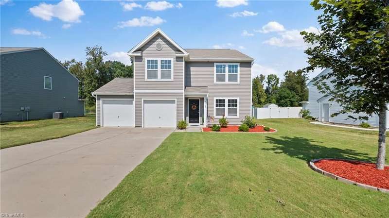 $2500 Flex Credit BUYER INCENTIVE with acceptable offer! Spacious & Efficient 3 Bed, 2.5 Bath Home in the heart of Gibsonville. Open Main Level floor plan offers LVP Floors throughout and a seamless flow from Living Room to Dining Area & Kitchen w/ample Counter & Cupboard Space, Large Center Island and Pantry. Tucked in the back of the main level is a Private Flex Space, ideal for Home Office, Study or Guest Space. Second Level offers a Spacious Primary En Suite w/Garden Tub, Separate Shower, Double Vanity & Large WIC. Two additional Bedrooms, Full Bath, Laundry & Loft Bonus Space complete the 2nd Level. Additional closets and attached 2 Car Garage offer plenty of storage space. Lots of potential in the Large, Private Back Yard area. Neighborhood has a secluded country feel with easy access to Gibsonville, Burlington, Elon & Greensboro Shopping & Dining.