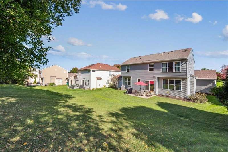 Welcome to this lovely two story home, four bedrooms on one level located in IDS 196 has been meticulously maintained. Move in ready condition with in walking distance to Deerwood Elem. Blackhawk MS. Home backs up to wooded privacy. Spacious open kitchen, two living areas, formal dining room. Main Level laundry room off three car garage. Primary has large walk in closet, dual sinks, separate shower & tub. Lower level has an egress window for a future 5th bedroom and is ready for you to make your own. Fresh Paint, plenty of storage, radon mitigation system, newer water heater, newer AC,newer gutter helmets. newer large foyer window. In ground sprinkler system. Close to shopping, dining with easy freeway access.