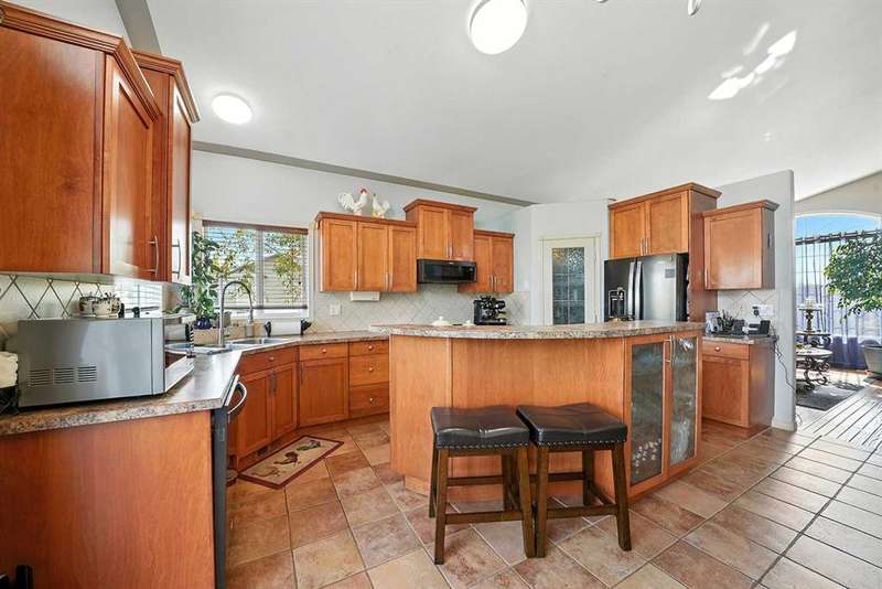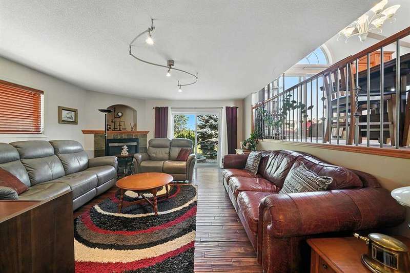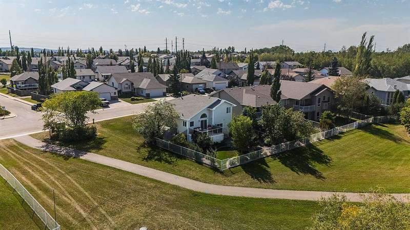 Beautifully maintained former show home is sure to impress! 3 bed+den & 3 bath, over 1831 square feet plus the finished basement, with features such as A/C, heated garage, & a walkout - all while backing onto a large green space that has a paved walking path! From the stamped concrete driveway, to the lush backyard, you are going to appreciate all that this property has to offer. Front living room has large windows, acacia hardwood flooring and vaulted ceilings. The dining area is open to both the family room & the kitchen, where there is maple cabinets, a newer gas stove that's properly vented out, a curved island with seating, corner sink, ceramic tile floors, and a double sliding glass door to the no-maintenance deck. You will love spending time out here, admiring the yard and green space through the glass panels and utilizing the gas line for either your BBQ or fire table needs. The upper level of this home features the primary bedroom that has a walk-in closet, and 4 pc ensuite with jetted tub & separate shower. A second bedroom and 4 pc bathroom complete upstairs. New carpet was professionally installed in 2023 on this level. The family room a few steps down from the kitchen has a gas fireplace and patio doors leading to the yard. There is a third bedroom and 3 pc bathroom with laundry that complete this space. Heading down to the basement you'll find a large rec space/tv area, den, and a ton of storage room. There is the bonus of underfloor heat as well. One of the water tanks (supplying the house) was replaced in April 2025. The furnace was replaced in November 2024. The attached double garage is insulated and heated by in-floor heat. The owners also added a sink that properly drains with hot/cold tap that will come in handy whether you are cleaning your vehicles or outdoor gear. There are two central vacuums; one in the house and one in the garage. The yard is a key feature - offering privacy, mature landscaping, stone patio, underground sprinklers, and views of the green space. There is a storage shed along the east side of the house & additional storage under the deck. This home is just a few minutes walk to so many amenities (Recovery Lab, Saint Mary Walk-in Clinic, F45, Doctors Eyecare, and Lume Dental to the North and the East Hill shopping centre to the South).