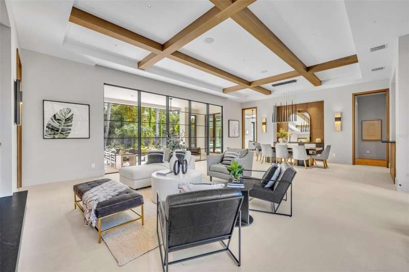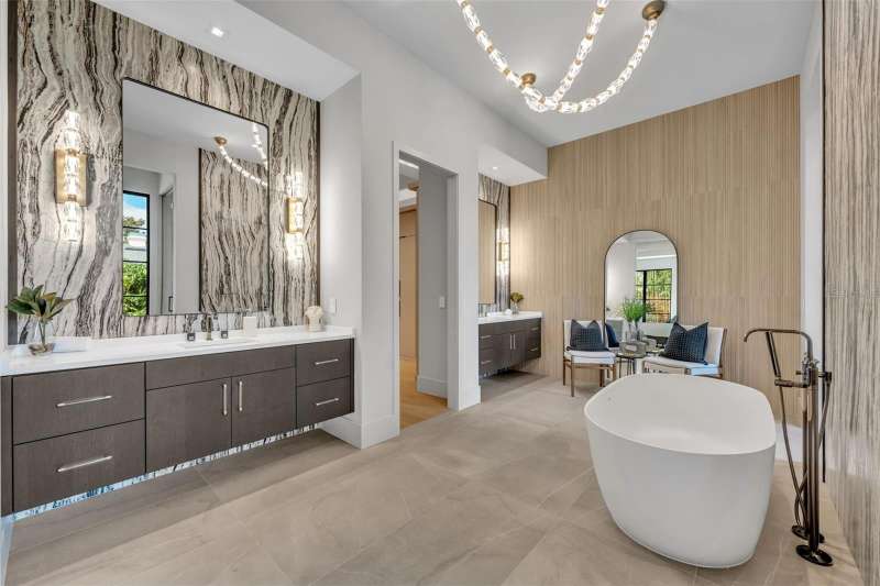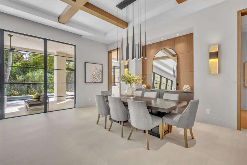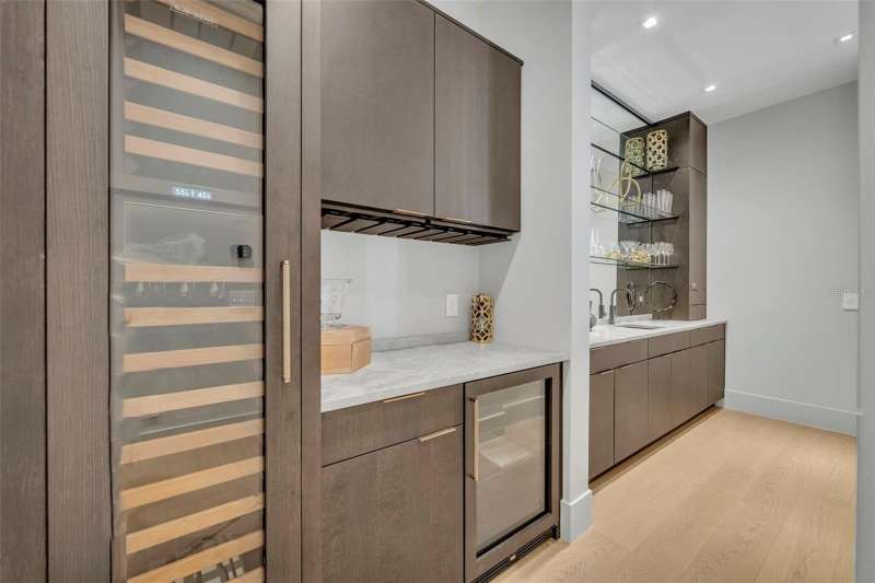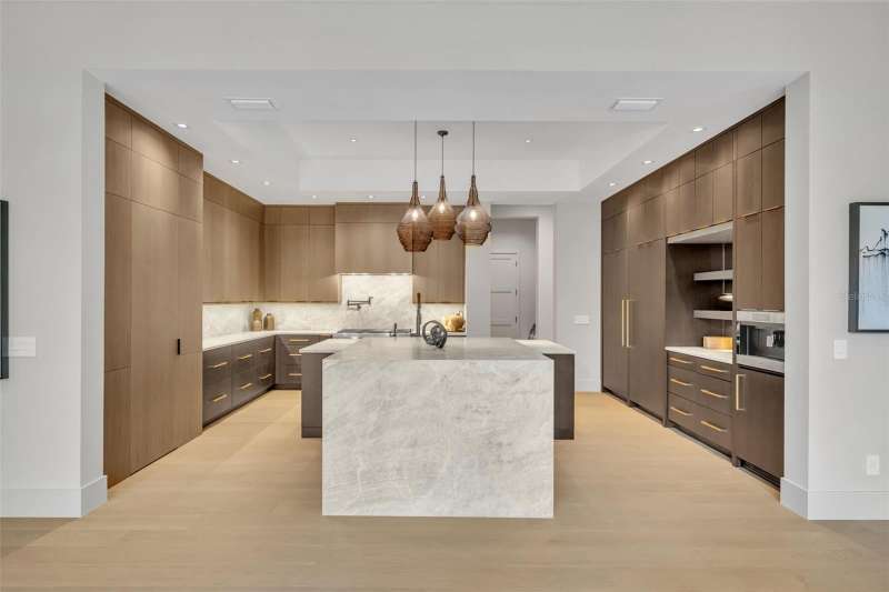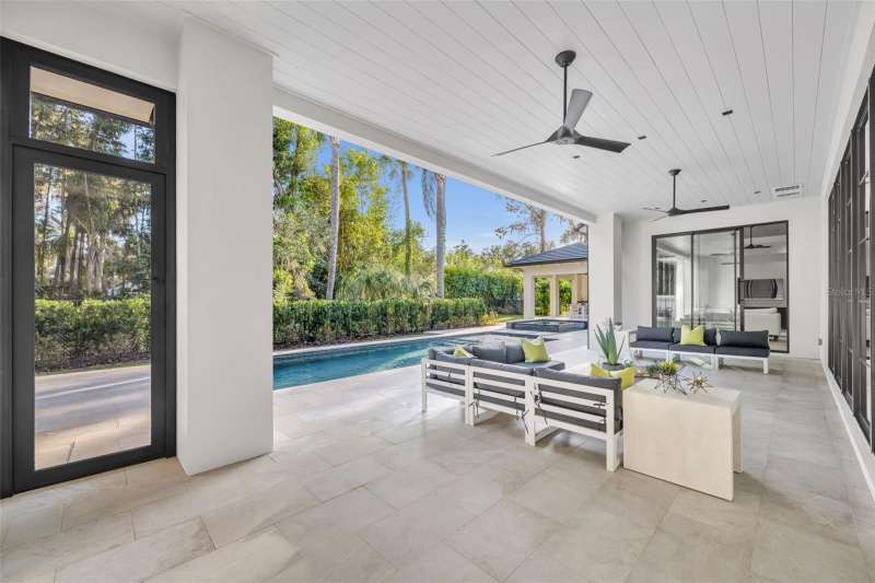 Exquisite new construction in the Heart of Winter Park perfectly positioned on an oversized lot just steps from Park Avenue’s renowned shops, fine dining, and the iconic Winter Park 9-hole golf course, this extraordinary custom residence is a showcase of timeless design and modern luxury. Conceived by acclaimed architect Dan Delong of Origins Residential Design and brought to life by Sean Wulff of Native Homes, every detail has been thoughtfully curated to impress even the most discerning buyer. The expansive floor plan encompasses 5 bedrooms, 6 full baths, and 1 half bath, blending sophistication and comfort across multiple living spaces. Highlights include a dramatic great room, inviting family room, private study, downstairs guest suite, a full bar featuring a 56-bottle wine refrigerator, and an upstairs game room ideal for both everyday living and elegant entertaining. A grand entry reveals the great room with soaring floor-to-ceiling windows and elegant Italian porcelain tile, all overlooking the serene pool and patio. The chef’s kitchen seamlessly connects to the family room and features Canadian-crafted European-style cabinetry, Wolf, Sub-Zero & Fisher & Paykel appliances (dual ovens, dual dishwashers, built-in coffee maker, wine cooler, and beverage center), quartzite countertops, a large island with bar seating, hidden walk-in pantry, plus whole house water softener and filtration systems for premium convenience. The first-floor primary suite is a true retreat with spa-inspired amenities and a custom-built walk-in closet complete with cabinetry and a spacious island. Also on the main level: a private guest suite and dedicated home office/study. Upstairs, a generous game room and three additional en suite bedrooms provide comfort and privacy for family and guests alike. Designed for seamless indoor-outdoor living, the residence boasts two covered lanais finished in Turkish Marble, disappearing screens, a summer kitchen with Urban Bonfire Cabinetry, refrigerator, and ice maker, along with a freestanding fire pit and lush tropical landscaping. The saltwater pool with sun shelf and heated gas spa ensures year-round enjoyment. Built to the highest standards, the home features R-14 block walls with core 500 insulation, open cell foam insulation in attic, Andersen windows, a flat concrete tile roof, and tongue-and-groove ceilings on all lanais. Additional luxuries include: Select European white oak wood floors and Italian porcelain flooring throughout 12’ ceilings on the main level, 10’ ceilings upstairs Cutting-edge construction for efficiency and durability