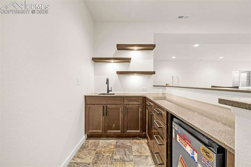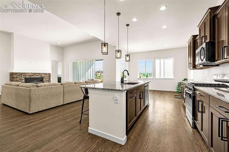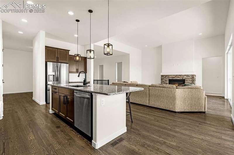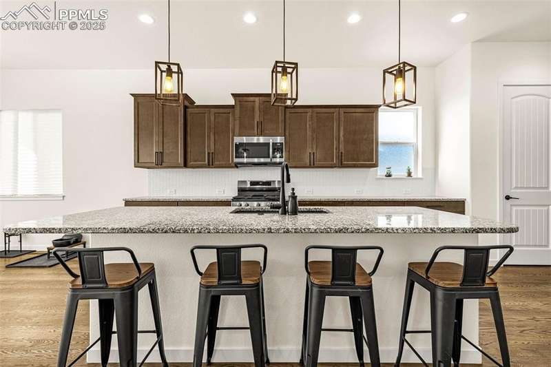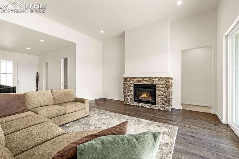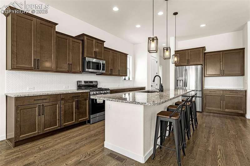 Experience refined living in this stunning rancher, perfectly situated in the prestigious Retreat at Timber Ridge in a cul-de-sac. From the moment you arrive, the expansive 3-car garage with 8’ doors and the architecturally designed covered rear patio set the tone for the quality and craftsmanship within. Step inside and be welcomed by a breathtaking open floor plan, anchored by a grand Great Room with soaring ceilings and a designer gas fireplace. A dramatic 12’ sliding glass door seamlessly connects the indoors to an upgraded covered patio—complete with a gas stub for effortless summer grilling or the warmth of a fire pit—creating the perfect indoor-outdoor entertaining space. The chef’s kitchen is both functional and elegant, offering abundant cabinetry, expansive counter space, and an ideal layout for hosting gatherings. Just beyond, the lavish main-level Mega Master Suite offers a serene retreat, featuring an oversized walk-in closet with direct laundry room access. The spa-inspired master bath boasts a frameless glass shower with barrier-free entry, dual vanities, and premium finishes that elevate your daily routine. The thoughtful main-level design includes a stylish powder bath, a custom-built boot bench in the owner’s entry, and a laundry room enhanced with upper cabinetry, sink, and counter space. Descend to the fully finished 9’ lower level, where a sprawling recreation and game area awaits—complete with a stunning wet bar for sophisticated entertaining. Two spacious bedrooms, a beautifully appointed ¾ bath, and a generous storage area (with rough-in for an additional junior suite) provide ample flexibility. Every detail has been considered, from the comfort of central A/C and a whole-home humidifier to the timeless elegance woven throughout the home. This is more than a residence—it’s a statement of style, comfort, and enduring value.