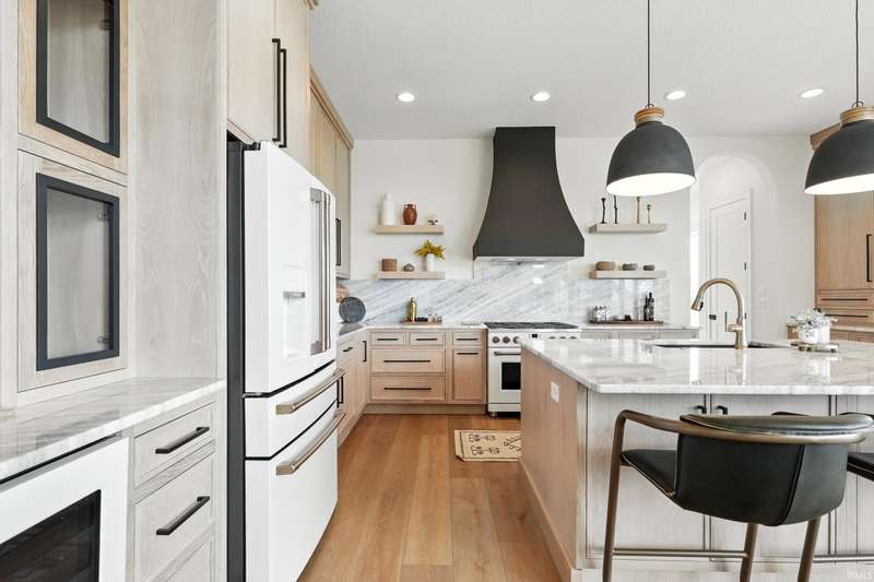 The Melania features stunning stonework with a board and batten exterior. It’s a spacious, stylish layout that perfectly blends functionality and luxury. A covered outdoor living room with fireplace offers the perfect space to relax or entertain and is easily accessed from the eatery. Enjoy cozy nights under the stars or host gatherings with ease in this inviting space. The great room boasts a dramatic two-story ceiling and fireplace and opens to the eatery and kitchen for a spacious and connected feel. It’s the ultimate setting for family time, entertaining, or simply enjoying your beautiful home. The main-floor master suite features vaulted ceilings and a luxurious five-piece bath. This private retreat offers comfort, elegance, and easy access without the need for stairs. Upstairs, three bedrooms include a Jack and Jill bath shared by two, while Bedroom 4 is set apart for added privacy—perfect for kids, teens, or guests to enjoy their own space. A rec/media room with a built-in study nook offers a dedicated area for homework, movie nights, or play, helping keep noise and clutter out of the main living spaces. Throughout the home, thoughtful features elevate daily living. A butler’s walk-in pantry adds elegance and efficiency with extra storage and appliance space just off the kitchen. A dedicated home office provides a quiet, productive area for remote work, while a flexible bonus room adapts as a gym, guest room, or playroom to suit your lifestyle. A cozy library or study nook creates the perfect spot for reading or creative pursuits. The laundry room is conveniently located on the main level and includes built-in storage, countertop space, and a utility sink for added functionality. A spacious mudroom near the entryway keeps everyday essentials like coats and shoes organized and out of sight. The oversized garage includes floor drains for seasonal convenience. Every space in The Melania has been designed for style, comfort, and connection—creating a home that lives beautifully and stands out in every way.