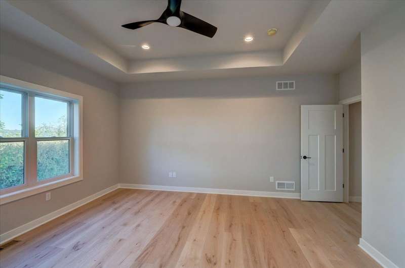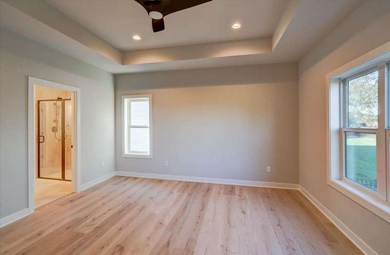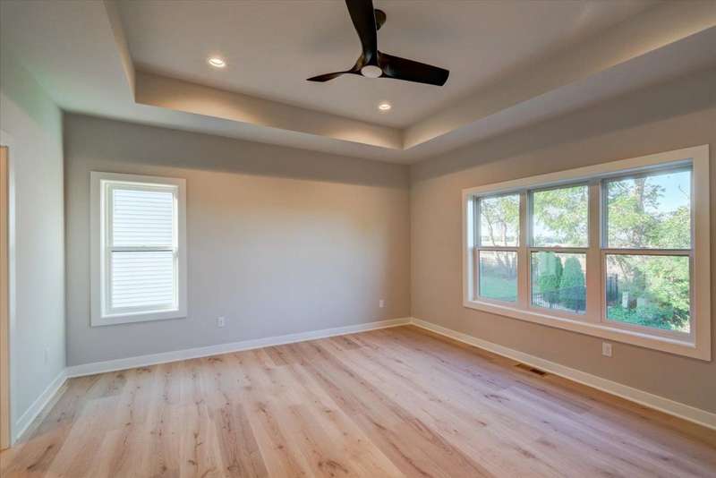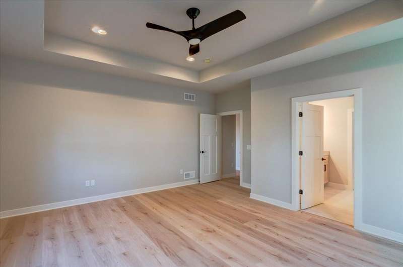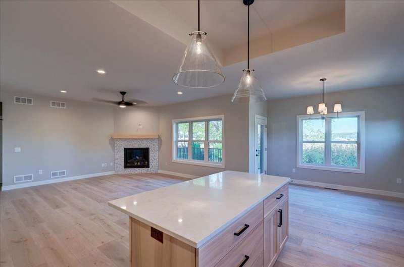 EST COMPLETION 9/30. Trademark Homes built 4 bed, 3 bath ranch in Hawks Valley with 2-car garage. Kitchen features walk-in pantry, island, quartz counters, stainless GE appliances with gas range. Dinette opens to composite deck and great room with corner gas fireplace. Primary suite has double vanity and walk-in tiled shower. Two additional bedrooms share full bath. Finished lower level includes 9' ceiling, rec room, 4th bedroom, and full bath. Magnolia Model on Lot 98. Professional landscaping exceeds deed restrictions. One of the last available lots in the neighborhood.