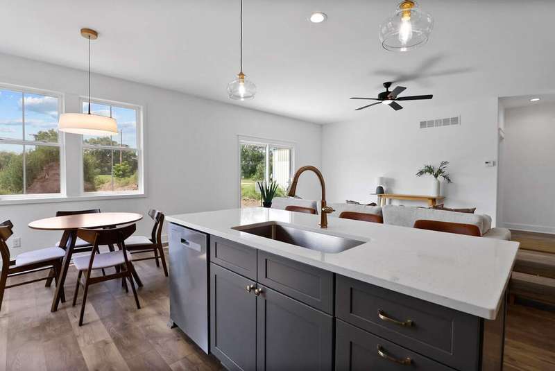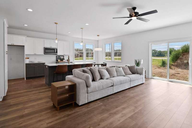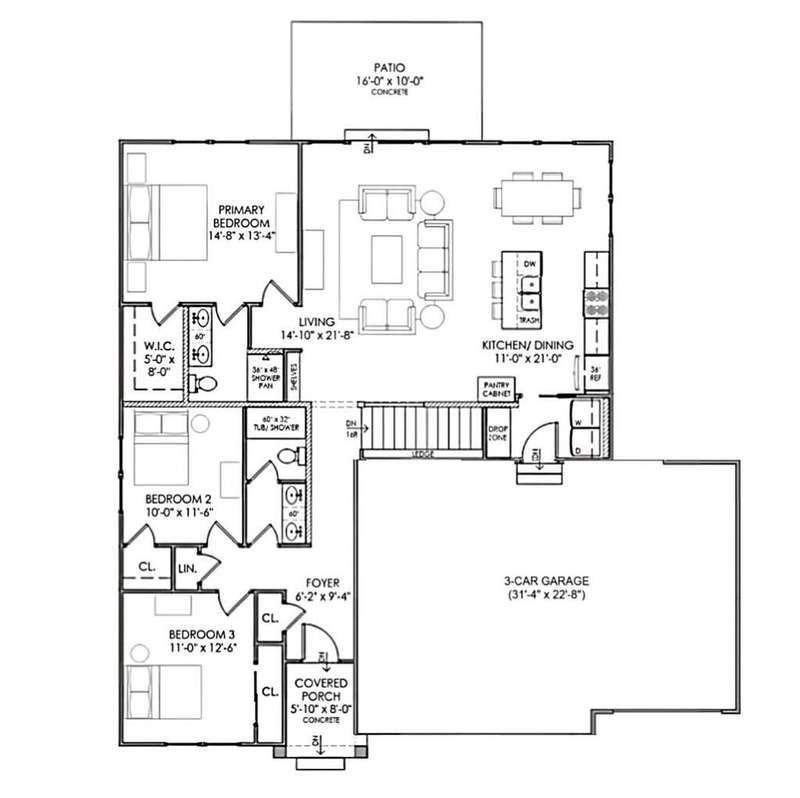 This proposed construction ranch home gives buyers the exciting opportunity to personalize every selection and finish, creating a home that's uniquely theirs! Nestled on a large .44-acre, tree-lined lot in a quiet cul-de-sac, this thoughtfully designed open-concept home offers 3 bedrooms, 2 full baths, and a functional, modern layout with 9' ceilings on the main floor. The kitchen includes quartz countertops, stainless steel appliances (dishwasher & microwave), and a large island with seating space. A sliding glass door from the living room leads to a concrete patio for outdoor dining or relaxing, and a spacious covered front porch provides a welcoming spot to unwind. The owner's suite features a double vanity, a glass-door shower with tile surround, and a 5x8' walk-in closet. The secondary bath is designed with a separate toilet/shower room and a second double-bowl vanity. Durable laminate plank flooring runs through the kitchen, living, dining, and entry areas. Custom built-in bookcases frame the living room, and the mudroom/laundry combination includes a drop zone with a built-in bench and storage. The unfinished basement has an egress window and roughed-in plumbing, ready for future expansion. The spacious 3-car garage is fully insulated and finished, providing plenty of room for parking and storage. Located just steps from the Iron Horse Heritage Trail and minutes from the Indiana Dunes National Park, this home offers a peaceful, nature-filled setting while still being close to shopping, restaurants, schools, and expressway access. With quick connections to I-94 and the 80/90 Toll Road, it's a fantastic location for commuters. Tour the finished model home at 2230 Foley St. to get a feel for the layout and craftsmanship. Act now for Spring 2026 move-in!