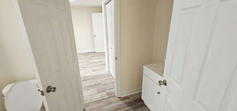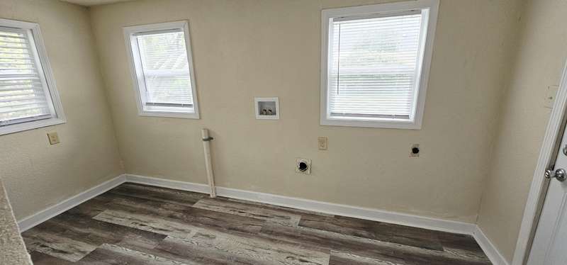 Like new! New subfloor, plumbing, cabinets, & windows! The large front porch is new (with pre-treated CCA lumber), The full bath (which includes a new tub, stool & vanity), is conveniently located between 2 bedrooms. There is a living room, dining room, and kitchen/laundry room; all wrapped with new interior and exterior paint. The backyard is wrapped with chain link on the sides and in the back. **Seller will credit $500 for buyer to choose a range for the kitchen**