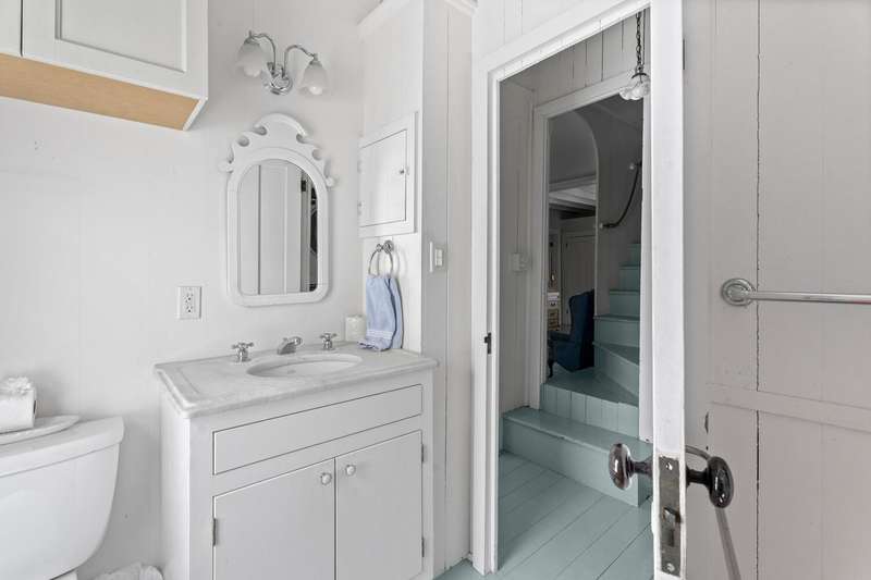Enjoy sweeping ocean views from this beautifully updated East Chop Victorian, complete with a timeless guest cottage. Thoughtfully renovated in 2010, the main residence seamlessly blends historic character with modern comfort. The kitchen and bathrooms have been stylishly updated while preserving the home's original charm and character. The guest cottage, tucked to the rear of the property, affords a private retreat or additional space for family and friends. Nestled in the heart of East Chop-a close-knit, sought-after community-this property is just a short distance from pristine beaches, the active harbor front, and vibrant downtown Oak Bluffs. A happy home, ready to welcome new memories and lasting moments.