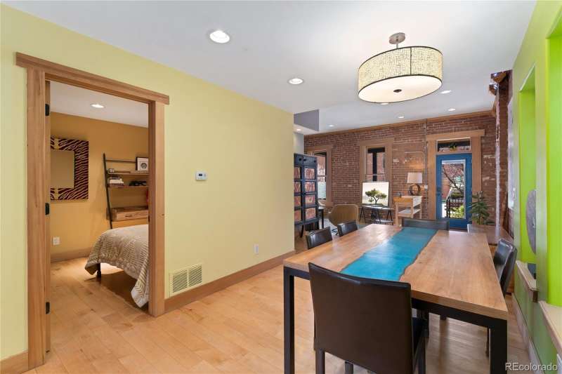 A truly unique and beautiful home with a basement studio apartment, this home currently generates an average of $60,000 a year income as an owner occupied short term rental. 3313 Curtis blends an 1886 classic brick Denver home seamlessly into a contemporary modern addition that preserved the warmth of the original brick structure while providing the amenities of a brand new home. Exposed brick walls, large windows, open, flowing floor plan, tall ceilings, smooth finished walls, 100% new systems, from Plumbing and HVAC to electrical and framing, the house is essentially new. $40,000 in underground utility work has been done to prepare for an ADU off the alley. Fantastic flexible floor plan gives the new owner plenty of options. Each bedroom has it's own ensuite bath. The tastefully finished basement features cork floors, a murphy bed, 3/4 bath and small kitchen, giving it the capability of being an entirely separate studio apartment, a third bedroom for the house or any number of other uses that fit the owners needs. The beautiful kitchen looks out onto a nice private courtyard that blooms with color all season long. A main floor bedroom with it's own bath and walk in closet is a hard to find feature in most two story homes of this age and the second floor primary suite is it's own oasis with a balcony overlooking the back yard and a large primary bath with walk in closet. The owner has payed attention to the details and it shows. The flexible back yard provides space to park two cars, grow a garden while still having plenty of space for storage. Owner stubbed a sewer line for future ADU when new sewer line was installed. Come see this lovely home. Truly a pleasure to see.