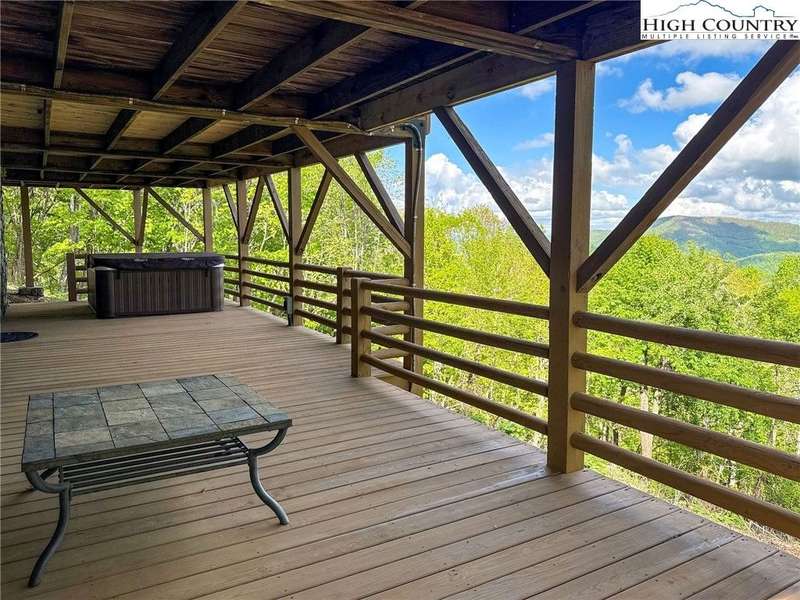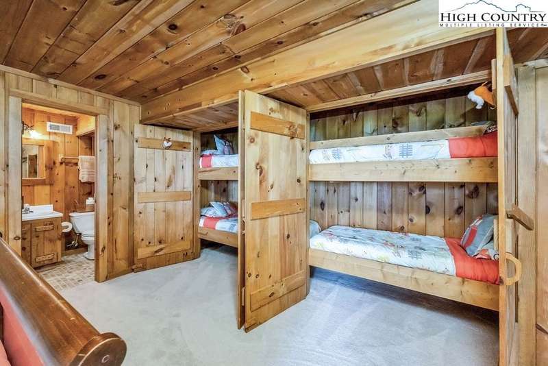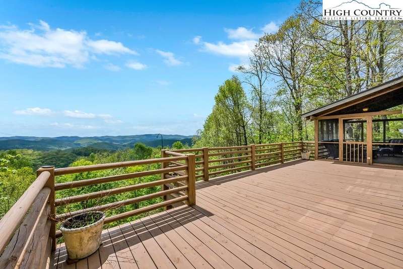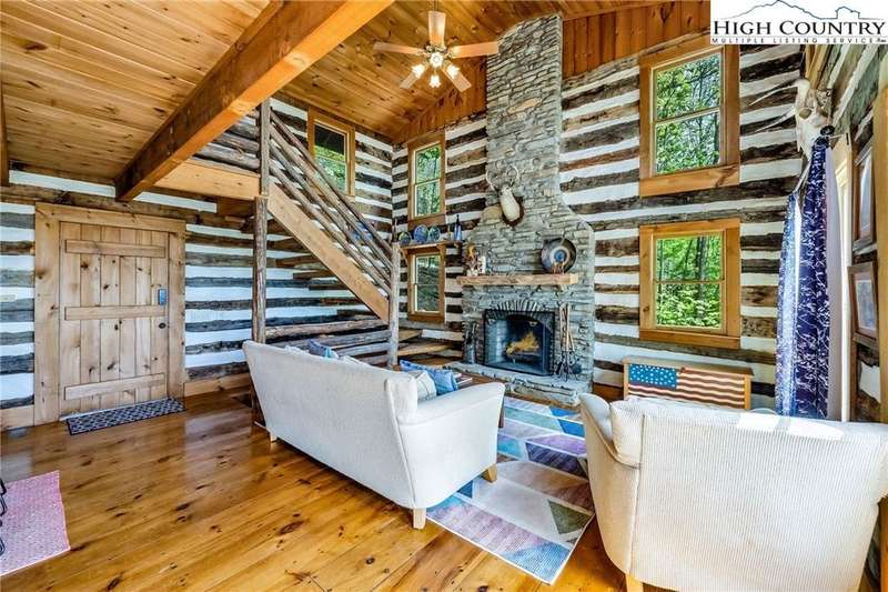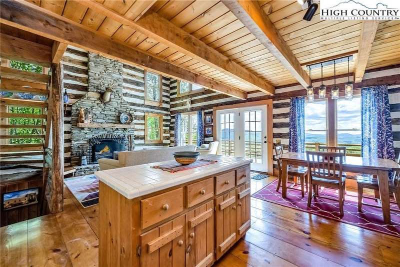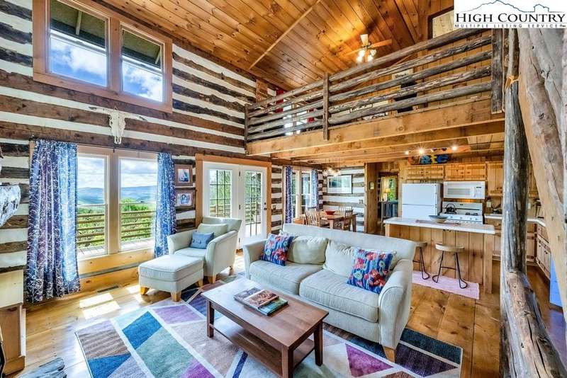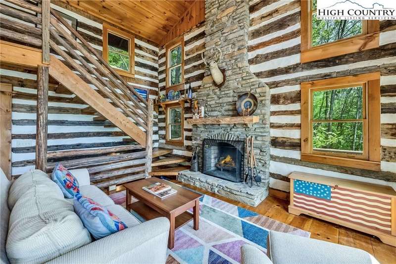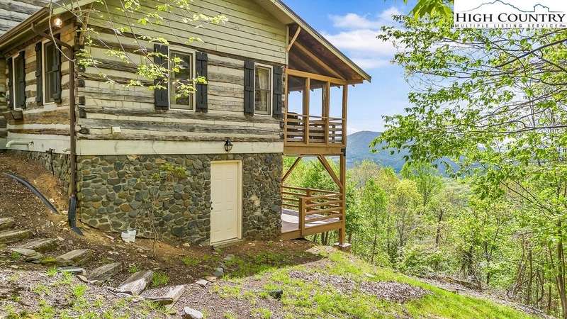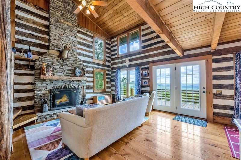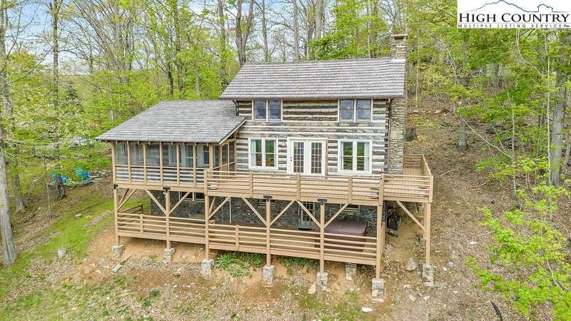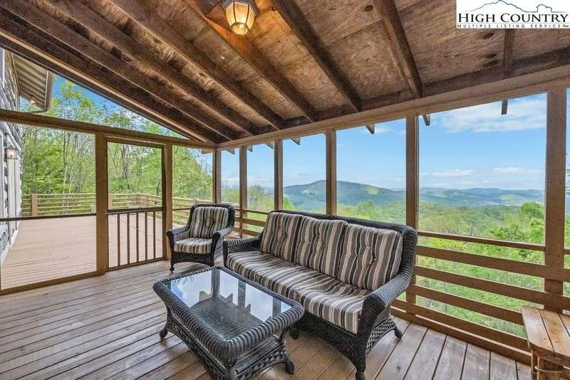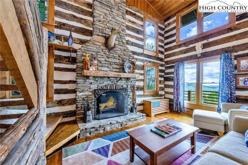 Live on top of the world?or at least feel like it?in this enchanting antique log cabin tucked away at the end of a ridgetop in Stonebridge. A covered wraparound porch welcomes you, where panoramic views of mountain peaks and sweeping valleys stretch as far as the eye can see. Inside, an open-concept great room seamlessly blends the kitchen, dining, and living areas, all centered around a stunning floor-to-ceiling flagstone fireplace. Gather around the fire each evening to relive the day's adventures in the High Country. The main-level primary suite is a restful retreat with private access to a screened-in porch, perfect for quiet mornings or peaceful evenings. An ensuite bath with a convenient laundry area completes the main level. Upstairs, a cozy loft bedroom and full guest bath offer your visitors a true cabin experience. The lower level expands your living space with a welcoming family room and a charming surprise?hidden bunk beds that add a playful touch for younger guests or those simply young at heart. A third full bath ensures comfort and convenience for all. Step outside onto the lower-level deck with a hot tub for a soak with a view or gather around the fire pit under a blanket of stars?yes, please, give me s'more of mountain living! Whether you're looking for a peaceful escape or a basecamp for adventure, this private mountain retreat is where your High Country dreams come to life?naturally, beautifully, and with a view that never gets old.