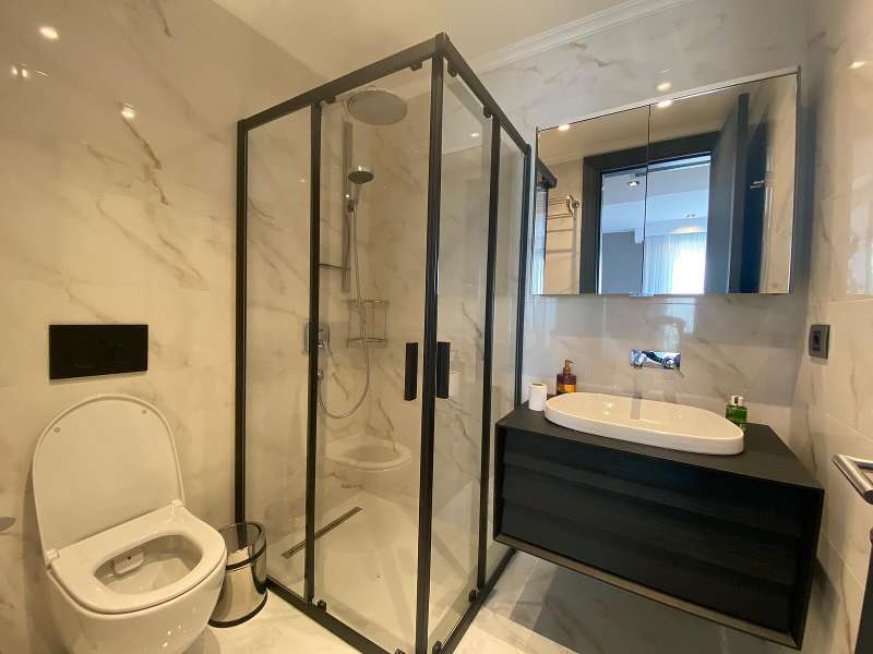 The 11 villas are built in a 7000 m² complex with 24/7 security. The detached villas have a private swimming pool, indoor/outdoor parking lot, large gardens, underfloor heating and VRF air conditioning system. Each villa has unique design features and first-class quality materials have been used carefully. All villas have 5-built-in sets and built-in wardrobes.