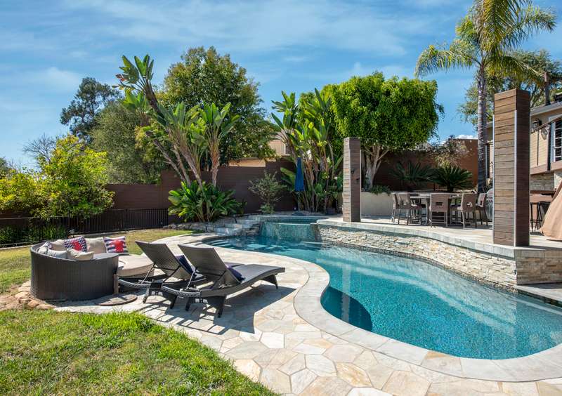 Set in the desirable Monte Vista school district, this 3-bedroom, 2-bath home offers the perfect blend of comfort and functionality, with inviting spaces to relax, entertain, and enjoy everyday living. From the moment you step inside, you'll feel the warmth-- a dining area glowing with natural light that flows effortlessly to the cozy living room with a corner fireplace creating the perfect ambiance for evenings in. A cheerful kitchen with an eat-in breakfast bar, loads of counter space and storage is perfectly situated between the dining room and outside for easy entertainment. The French doors from the living room, kitchen and bedrooms invite you out to the deck, connecting indoors and out with ease. The primary suite is its own retreat, offering double closets and a versatile flex space perfect for a home office, reading nook, or walk in closet. An oversized laundry room and a finished garage add even more options, whether you need storage, a workout space, or playroom. But the true magic is outside. The backyard is an entertainer's paradise your very own private resort. Picture gatherings on the modern Trex deck, year-round dips in the sparkling pool, a built-in hot tub under the stars, and an outdoor kitchen with BBQ ready for weekend feasts. An outdoor shower adds that vacation vibe, while fruit trees and mature tropical landscaping surround you with natural beauty and privacy.